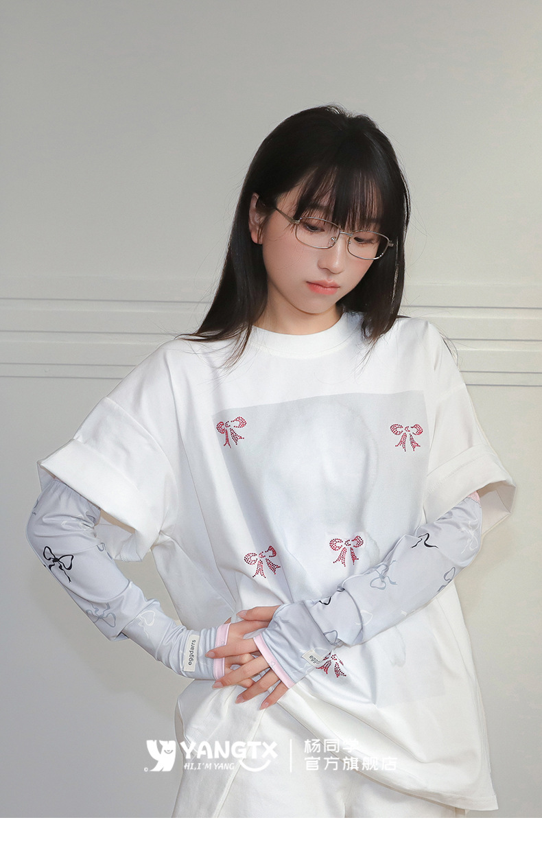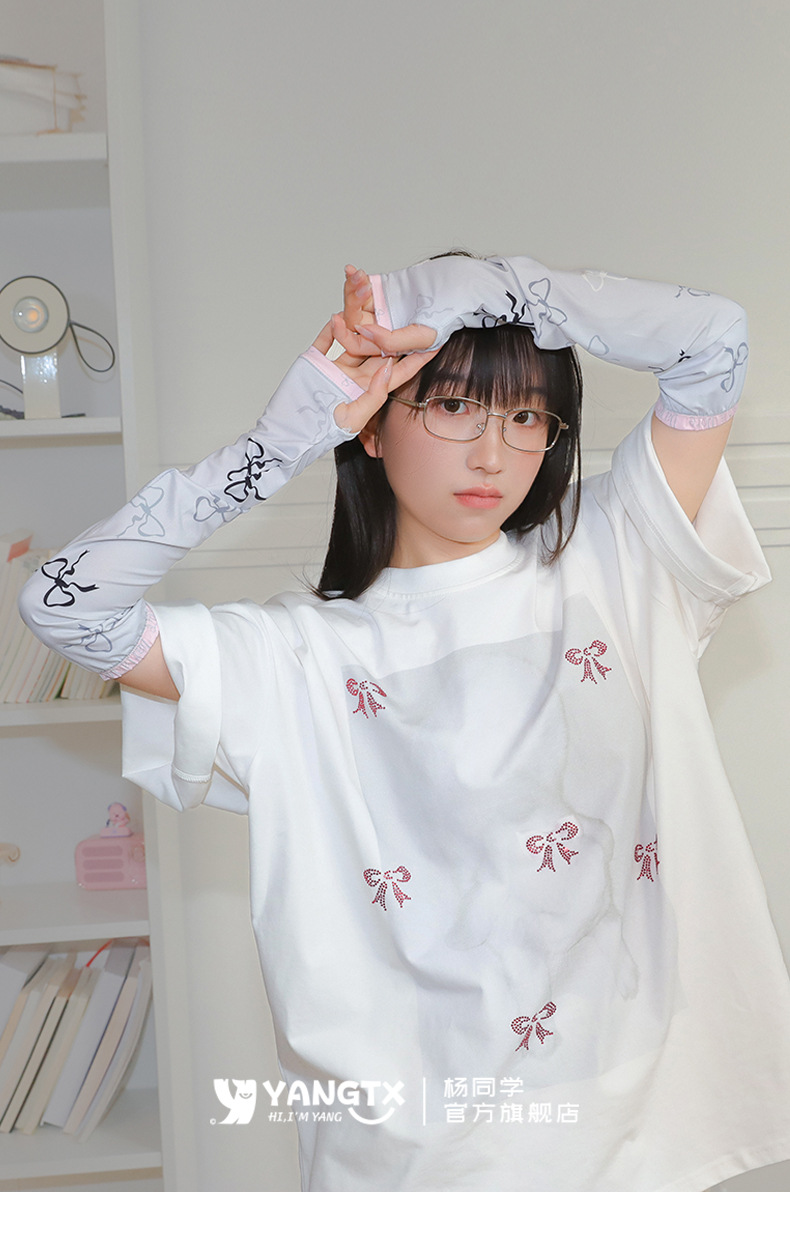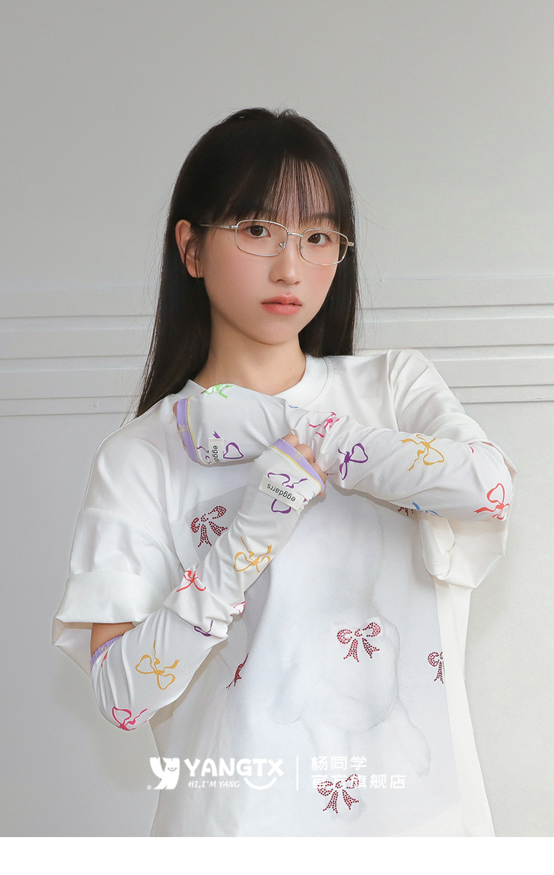 [양동생] 컬러풀한 리본무늬 아이스슬리브 여성 여름 사이클링 전기자동차 자외선 차단 슬리브 손가락 슬리브 루즈스토어 가기
