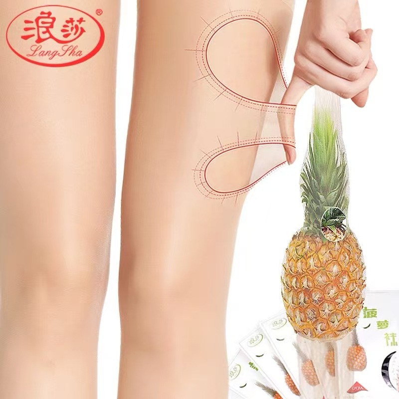 여름 여성용 Langsha 정품 팬티 스타킹, 초박형, 걸림 방지, 검은 살색, 슬리밍 다리, 파인애플 양말, 맨다리 아티팩트