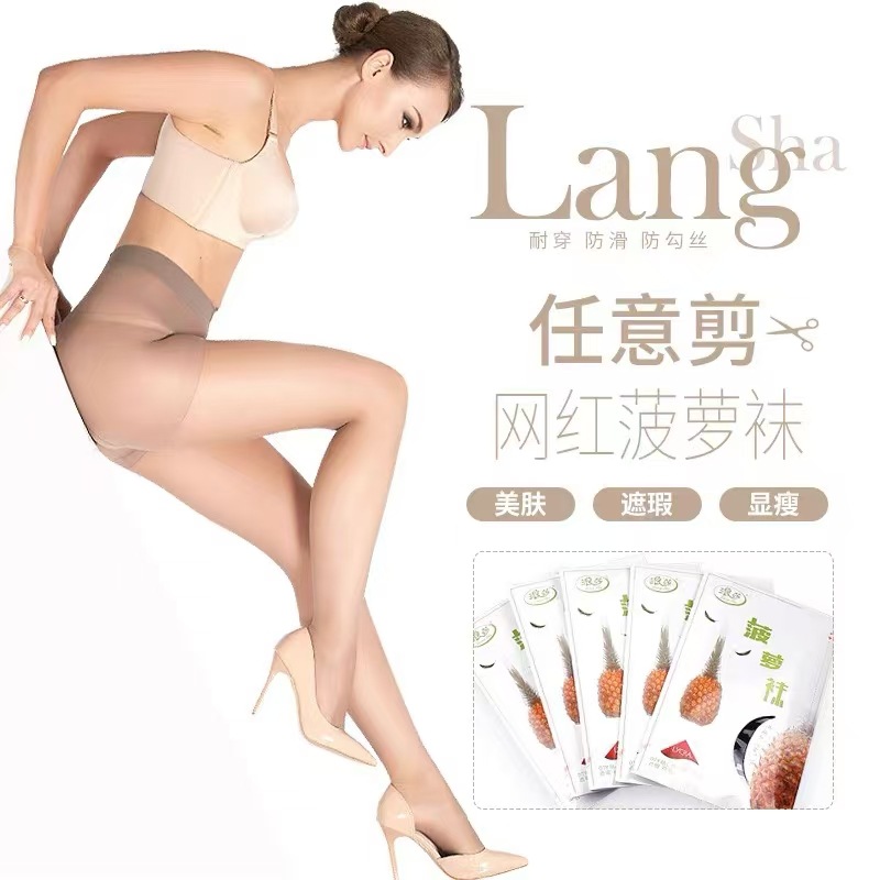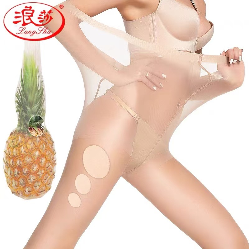 여름 여성용 Langsha 정품 팬티 스타킹, 초박형, 걸림 방지, 검은 살색, 슬리밍 다리, 파인애플 양말, 맨다리 아티팩트스토어 가기