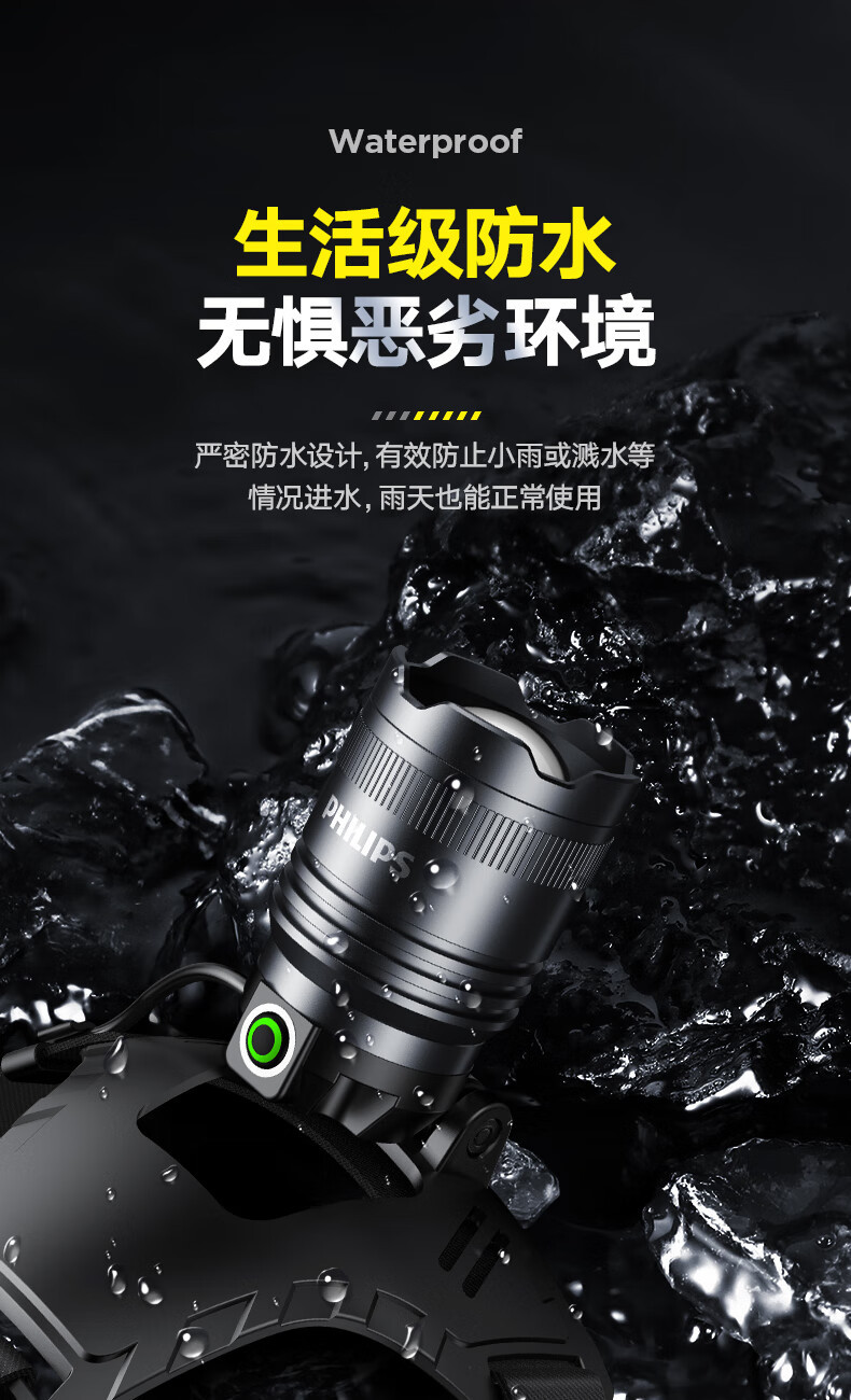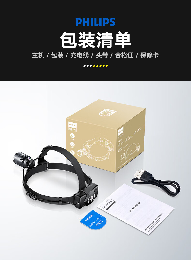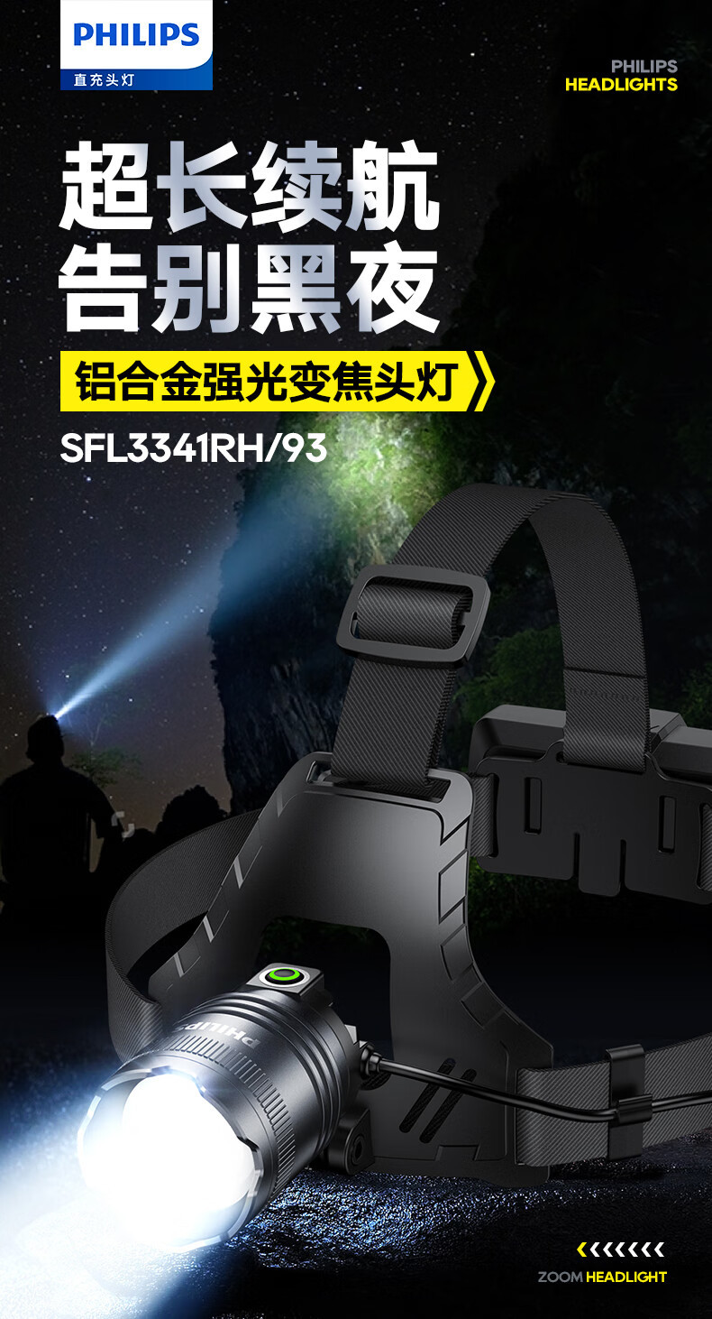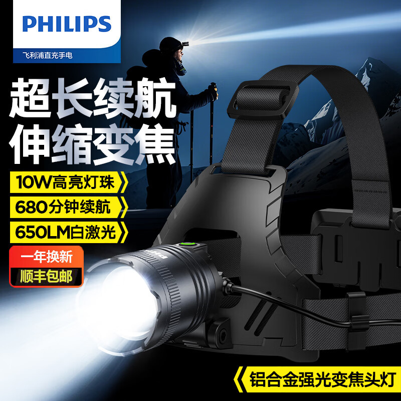 필립스 헤드라이트 강한 빛 줌 슈퍼 밝은 긴 배터리 수명 충전식 작업 야외 방수 야간 낚시 헤드 마운트 광부의 램프 조명
