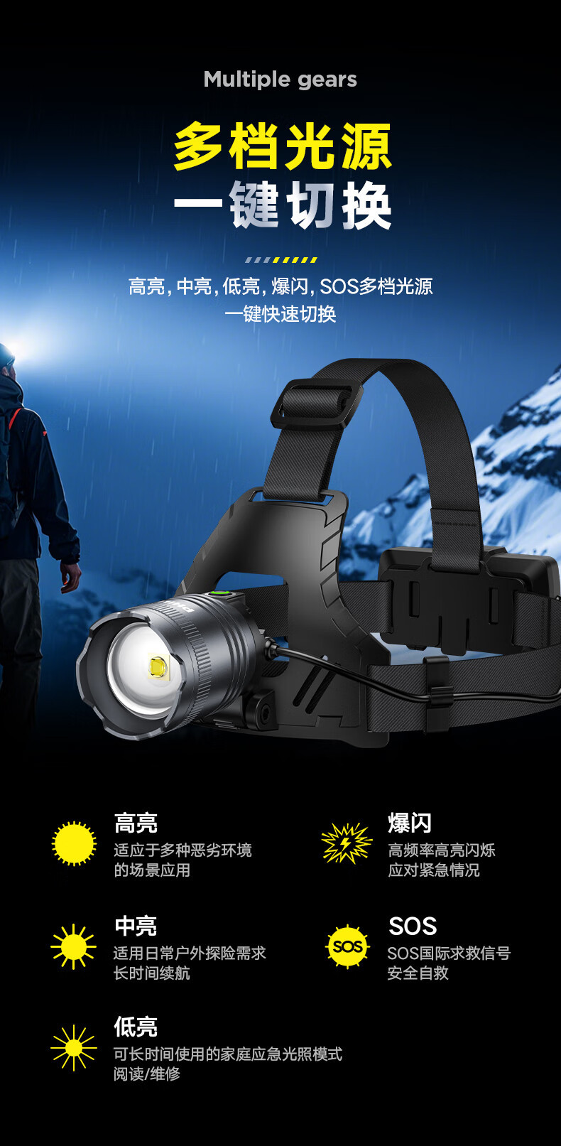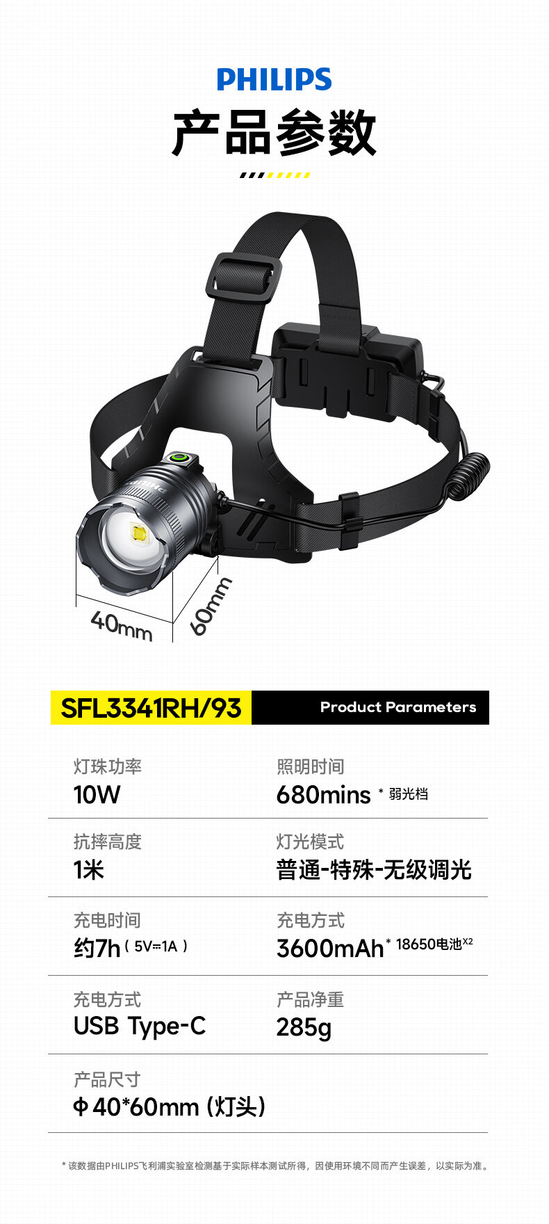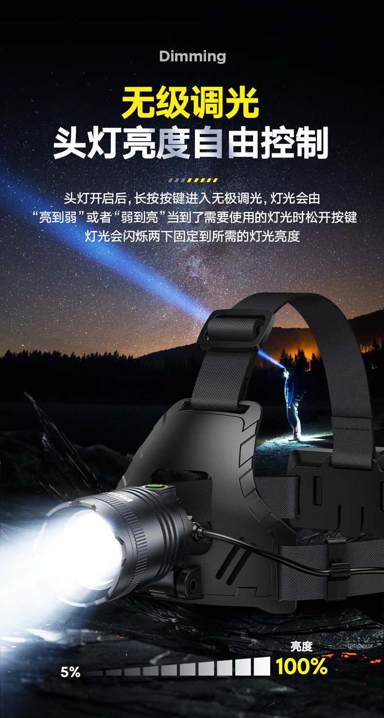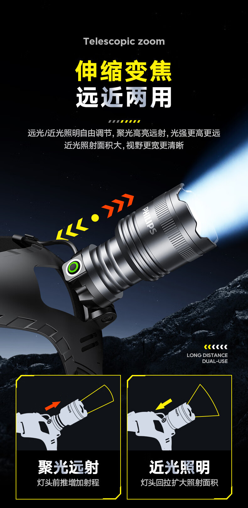 필립스 헤드라이트 강한 빛 줌 슈퍼 밝은 긴 배터리 수명 충전식 작업 야외 방수 야간 낚시 헤드 마운트 광부의 램프 조명