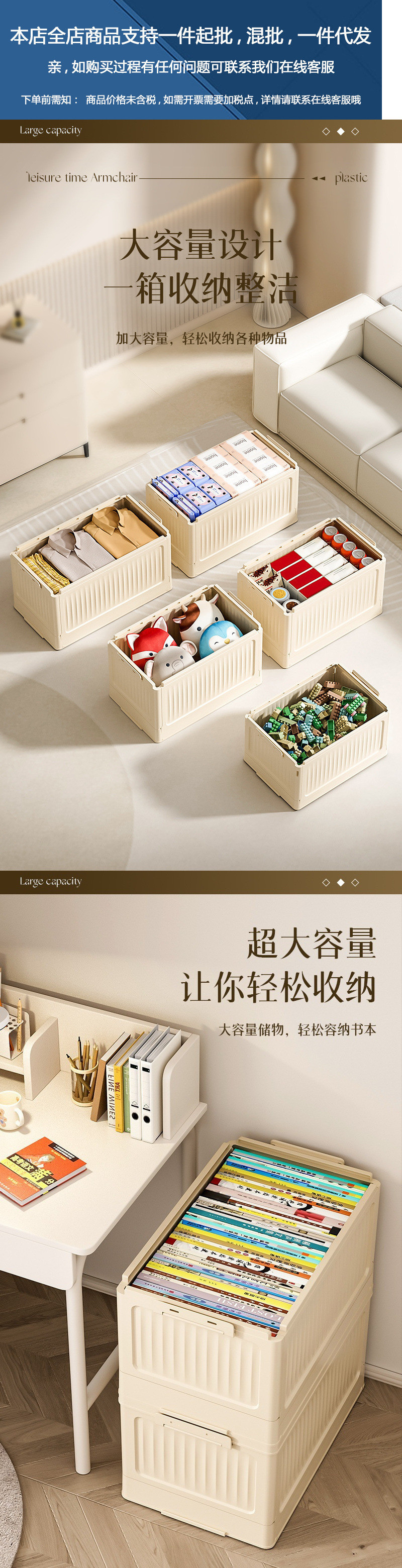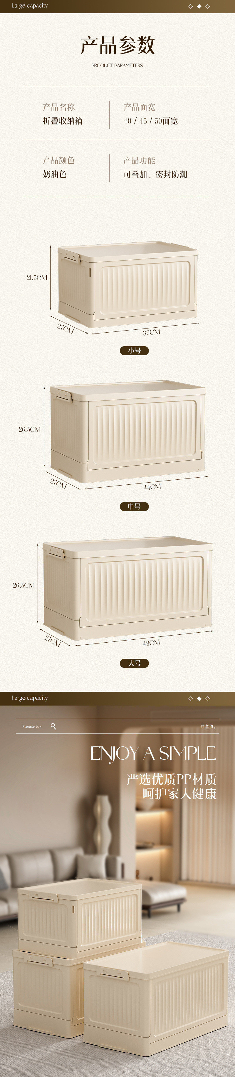 • 대형(베이지색 접이식 수납박스) ⚑ ⚑