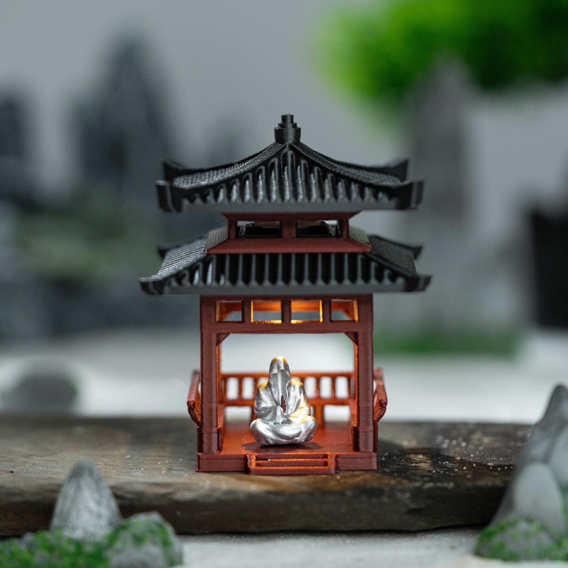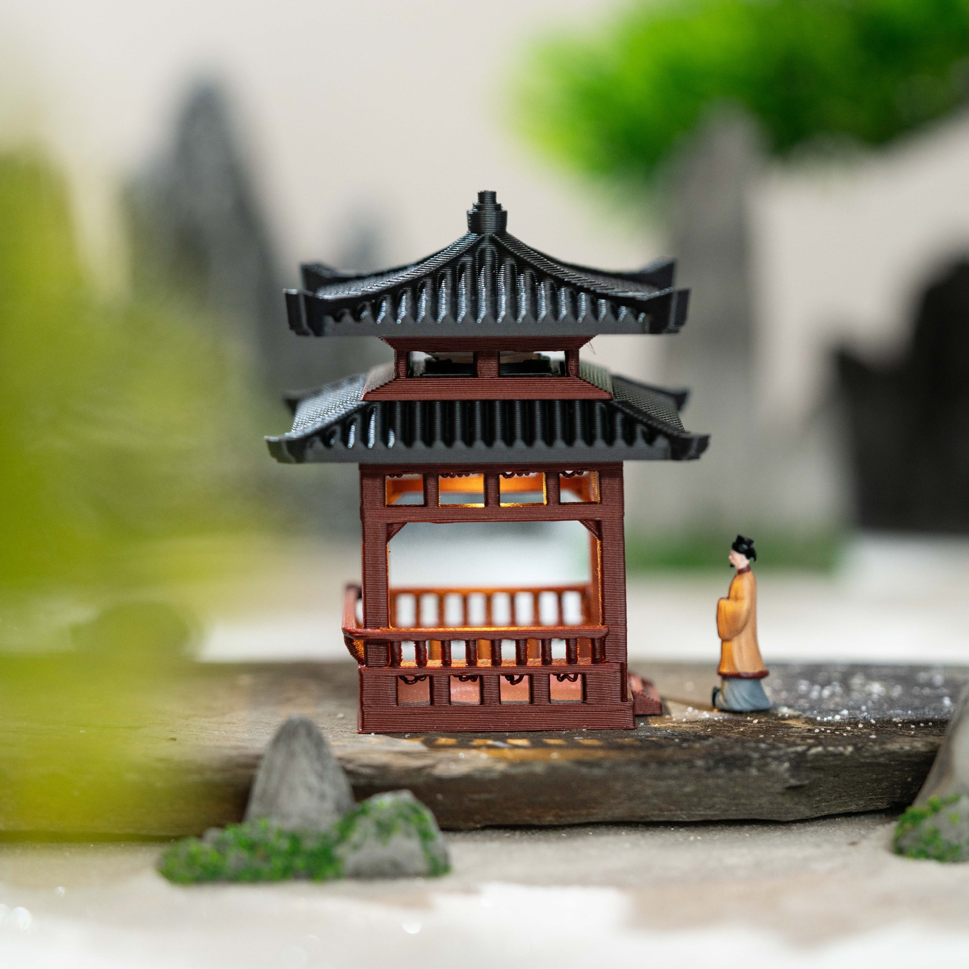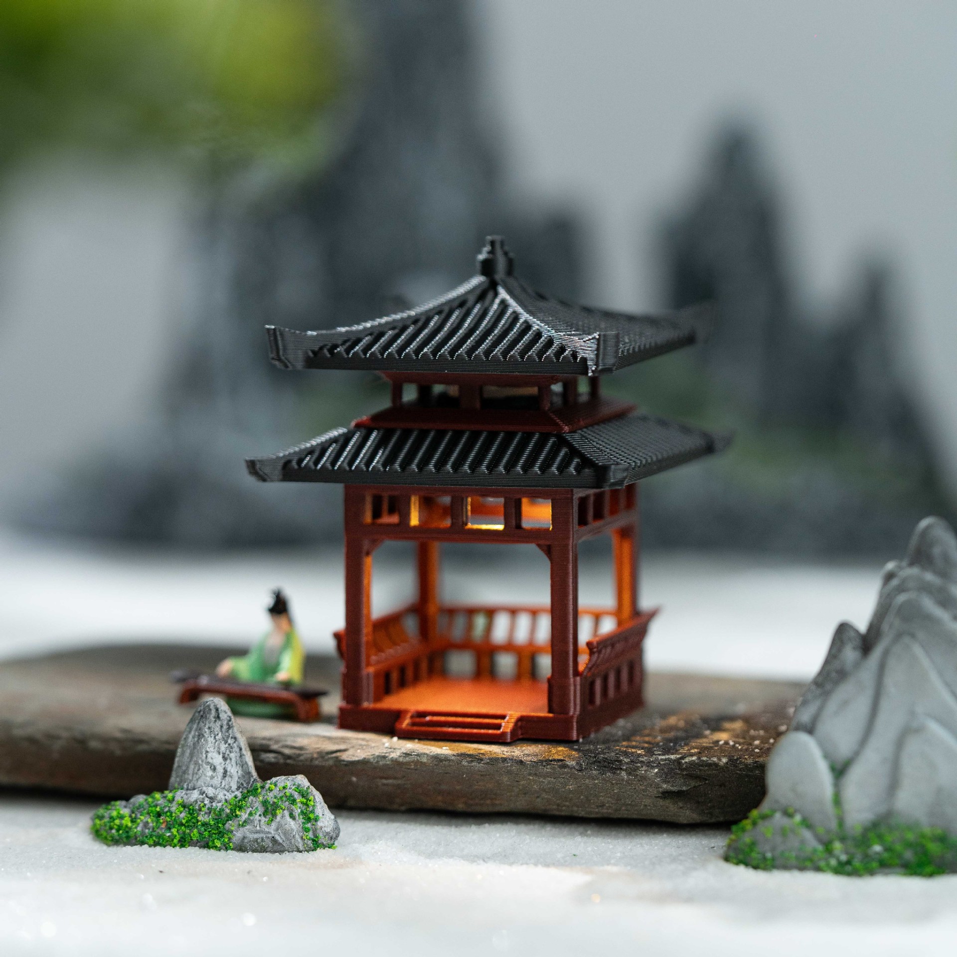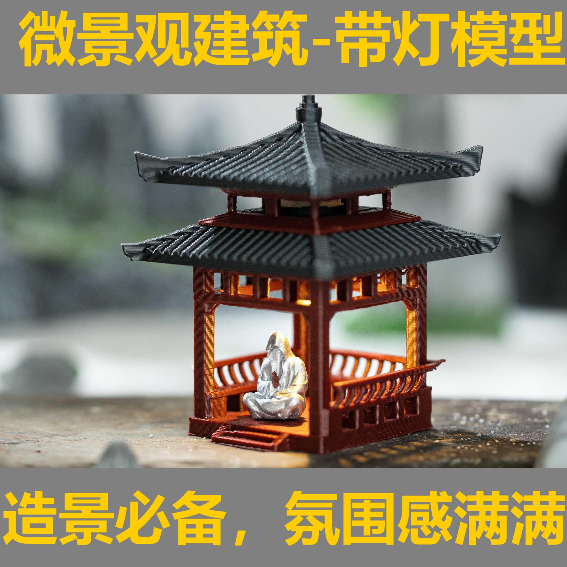 조명이 있는 건축 분재 안뜰, 고대 모델 사각 정자, 작은 장식품, 서재, 석가대, 수륙양용 수조, 수조 조경스토어 가기