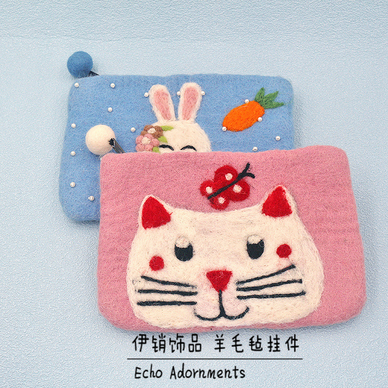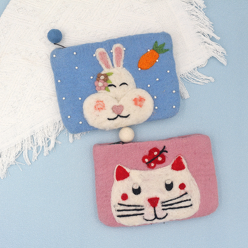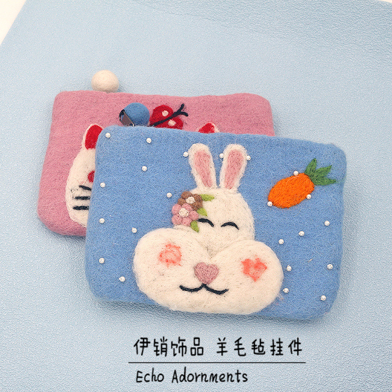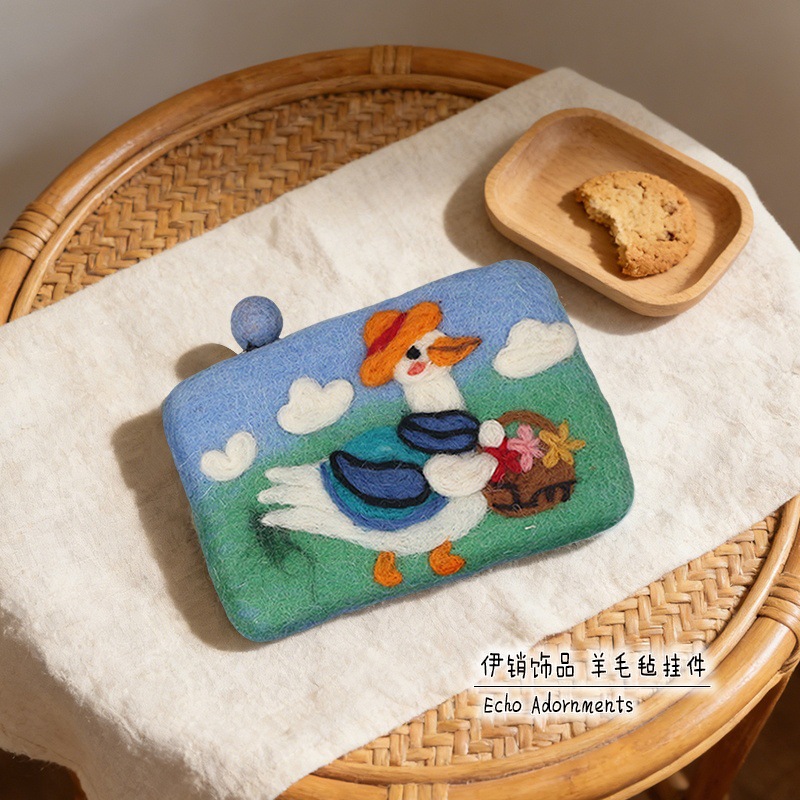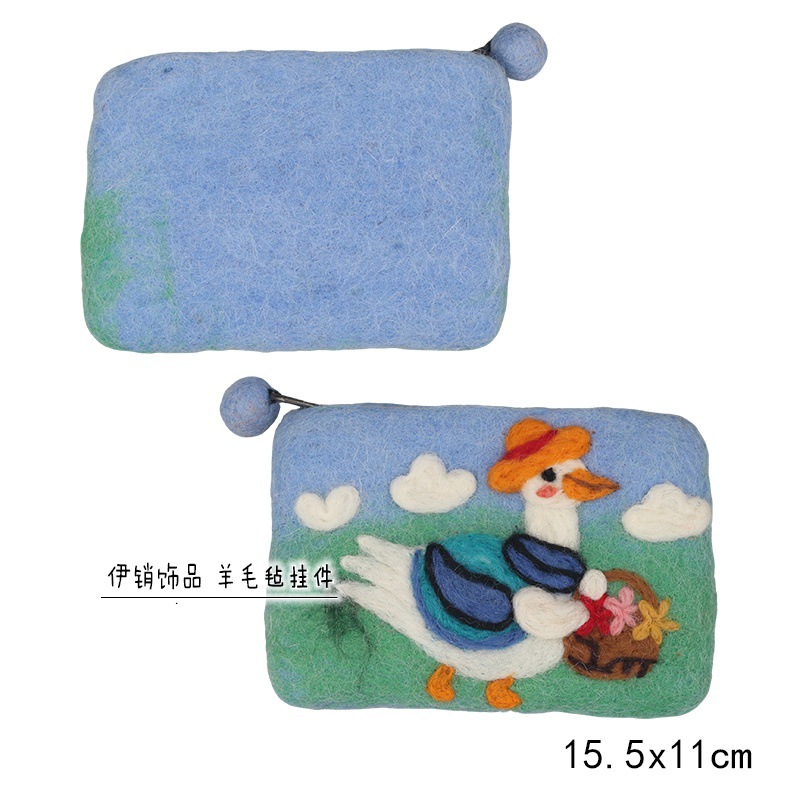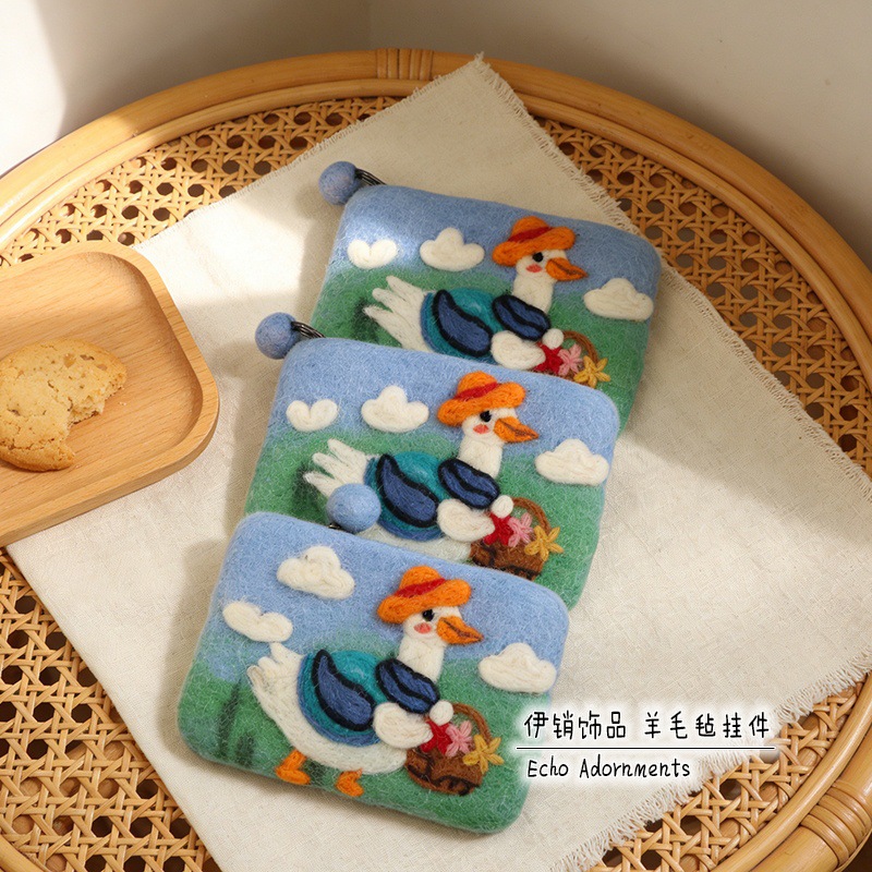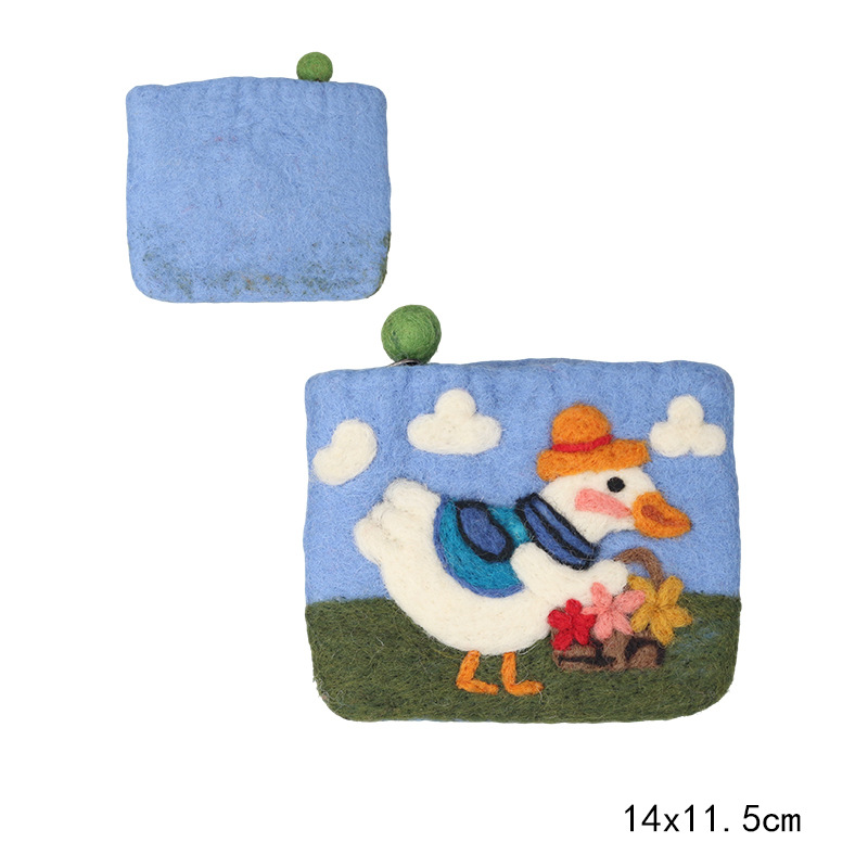 양모 펠트 귀여운 동물 동전 지갑, 예쁜 디자인, 어린이용 오리 카드 지갑, 이어폰 및 데이터 케이블 보관 가방스토어 가기