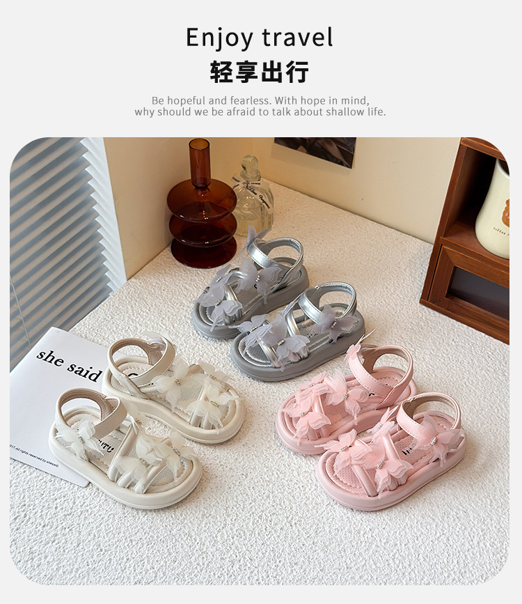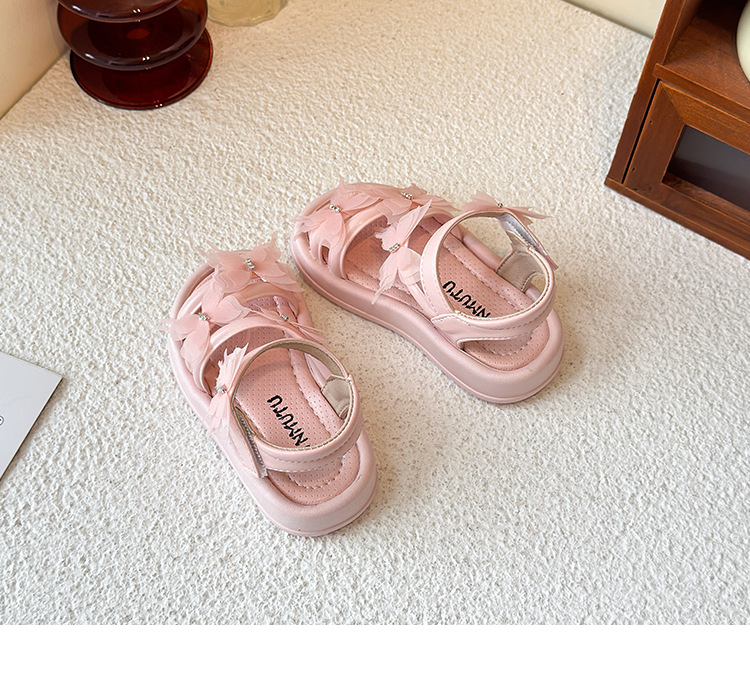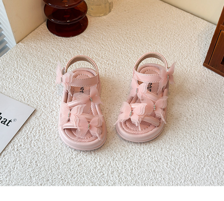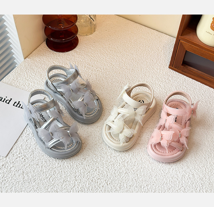 여자 샌들 2025 여름 새로운 어린 소녀 공주 신발 어린이 메쉬 활 오픈 발가락 부드러운 바닥 해변 신발스토어 가기