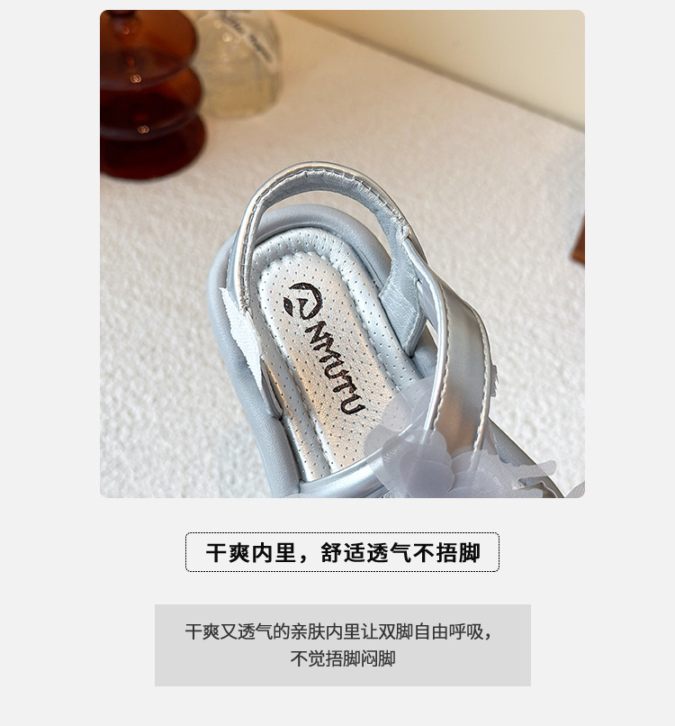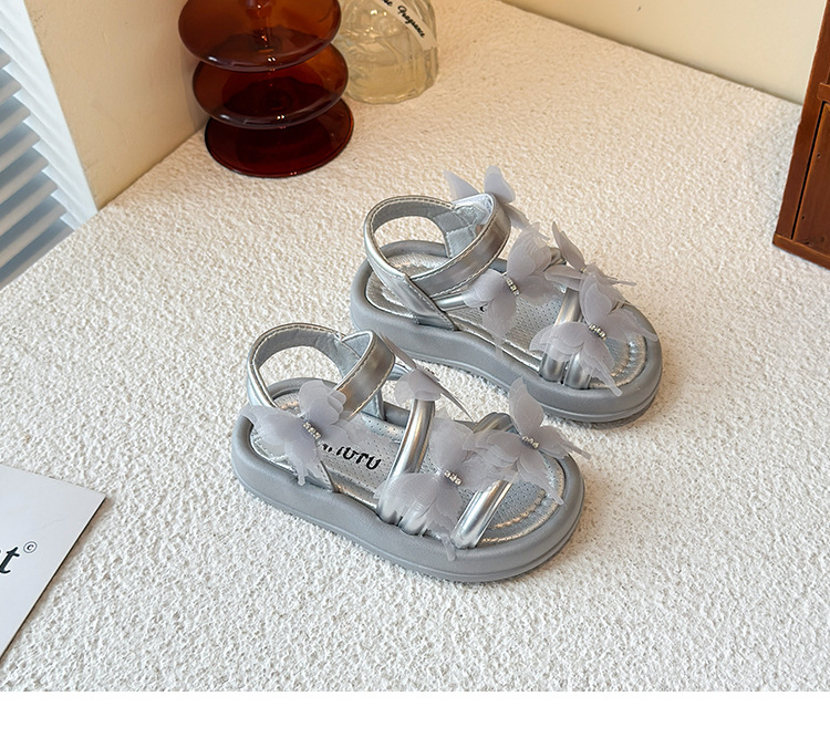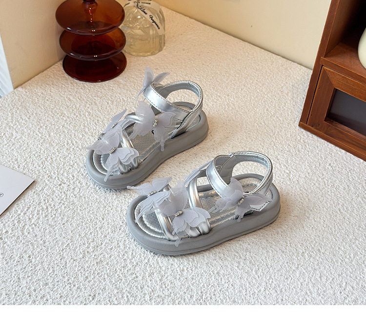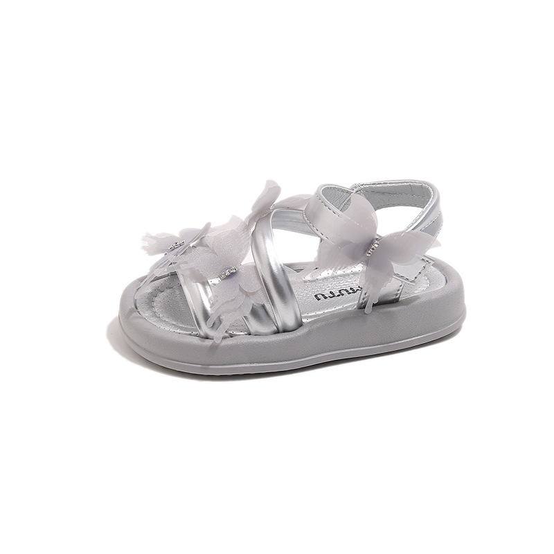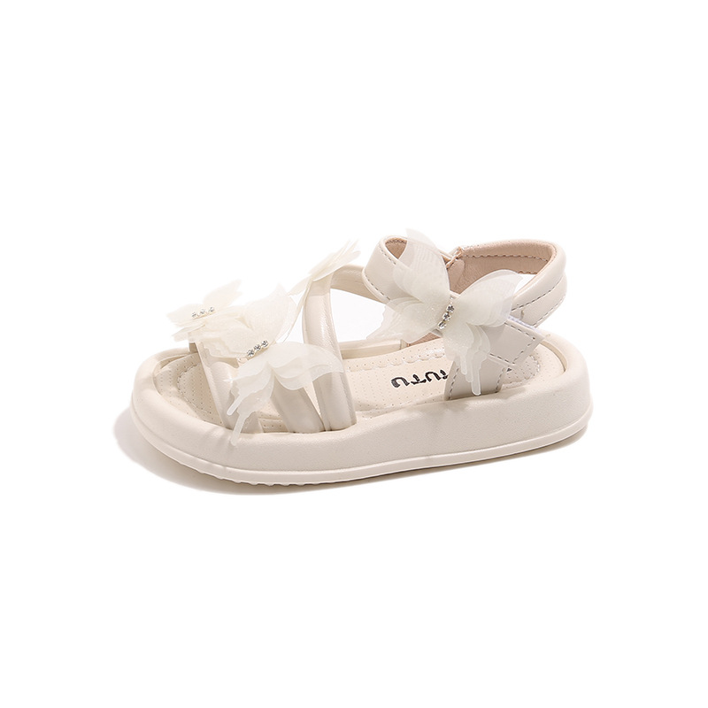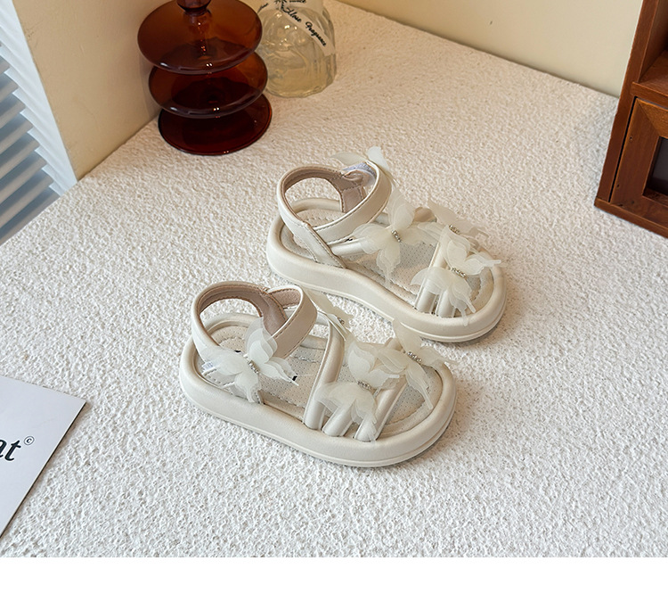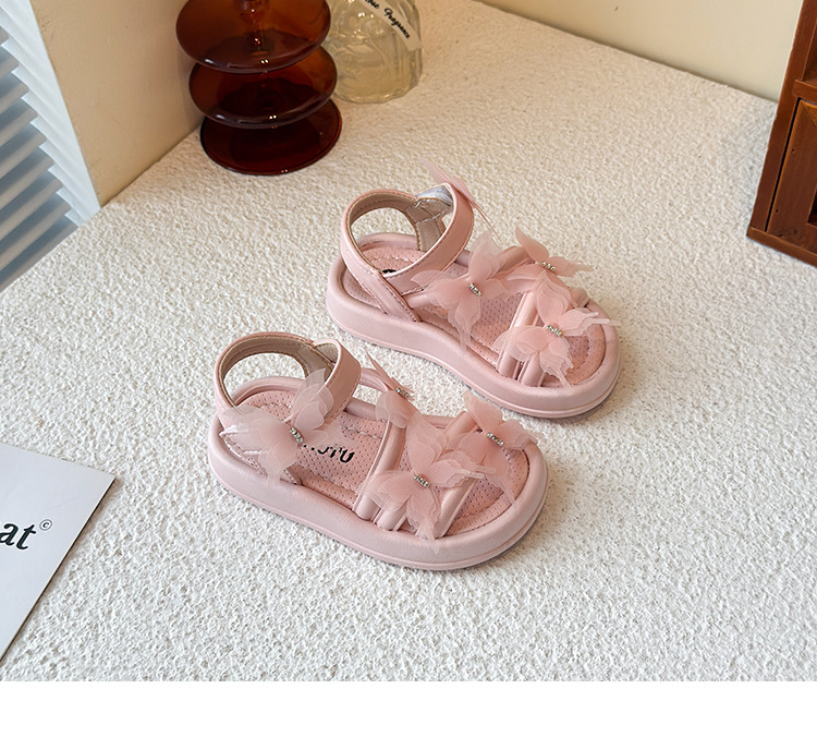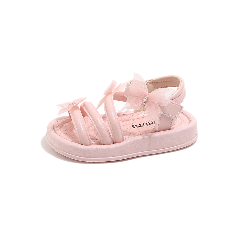 여자 샌들 2025 여름 새로운 어린 소녀 공주 신발 어린이 메쉬 활 오픈 발가락 부드러운 바닥 해변 신발