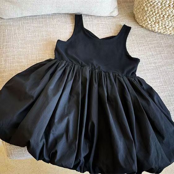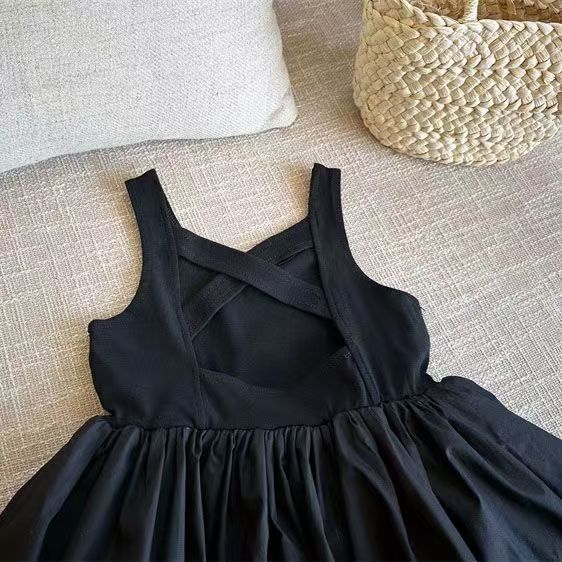 여아용 블랙 백리스 민소매 드레스, 여아용 꽃무늬 드레스, 여름 2026 신상 민소매 공주 드레스스토어 가기