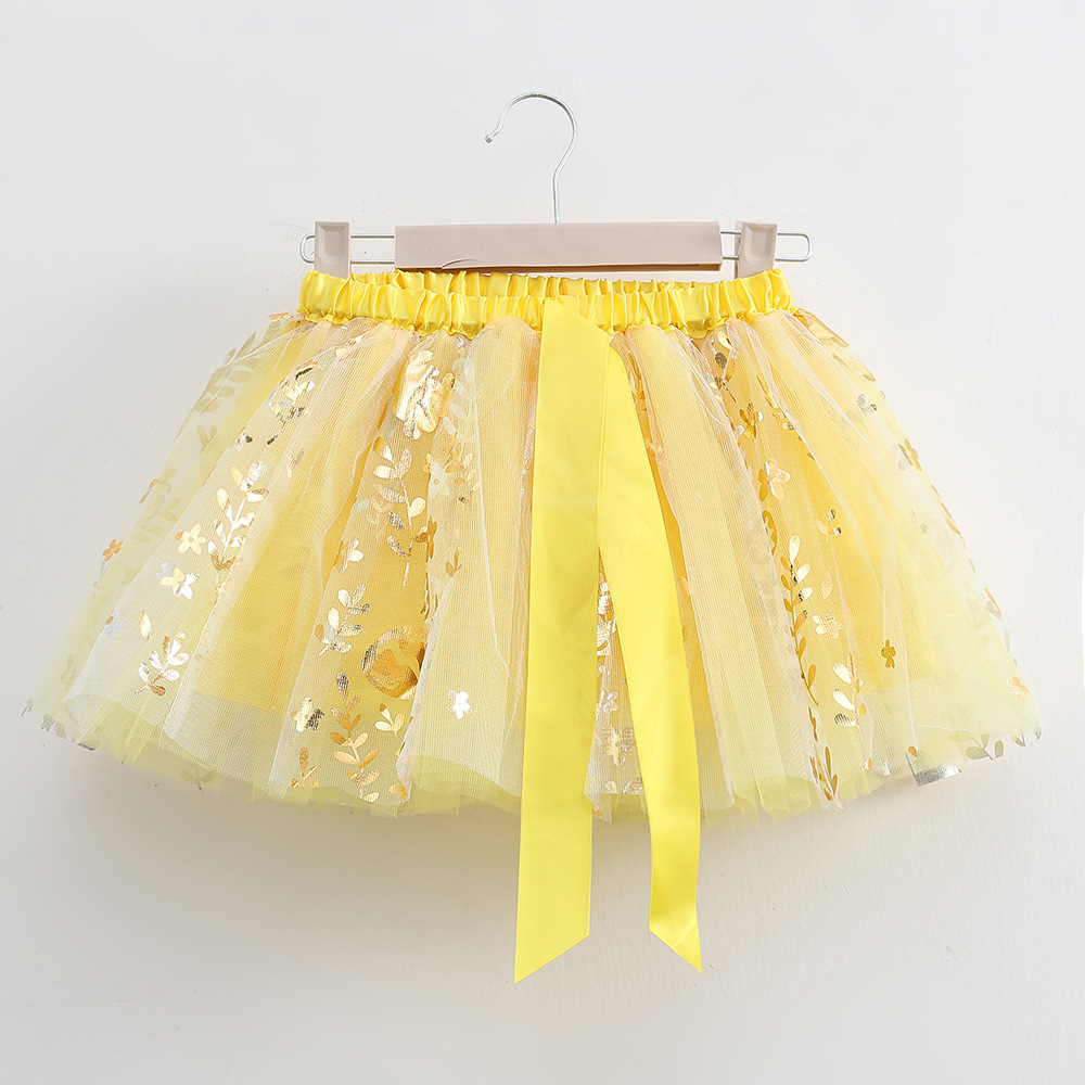 2025 아동복 여름 별과 달 거즈 스커트 핫 스탬핑 인쇄 메쉬 어린이와 소녀를위한 푹신한 안감 투투 스커트