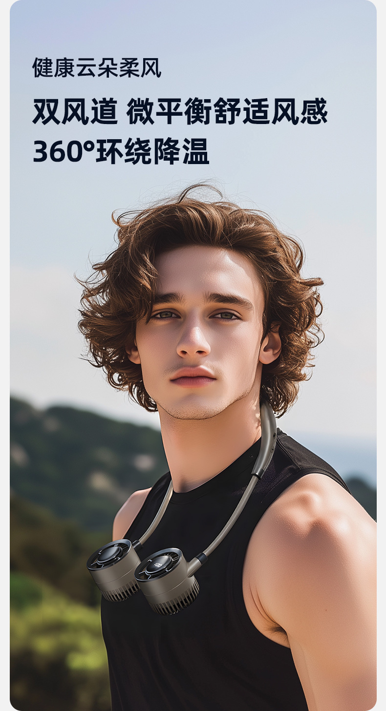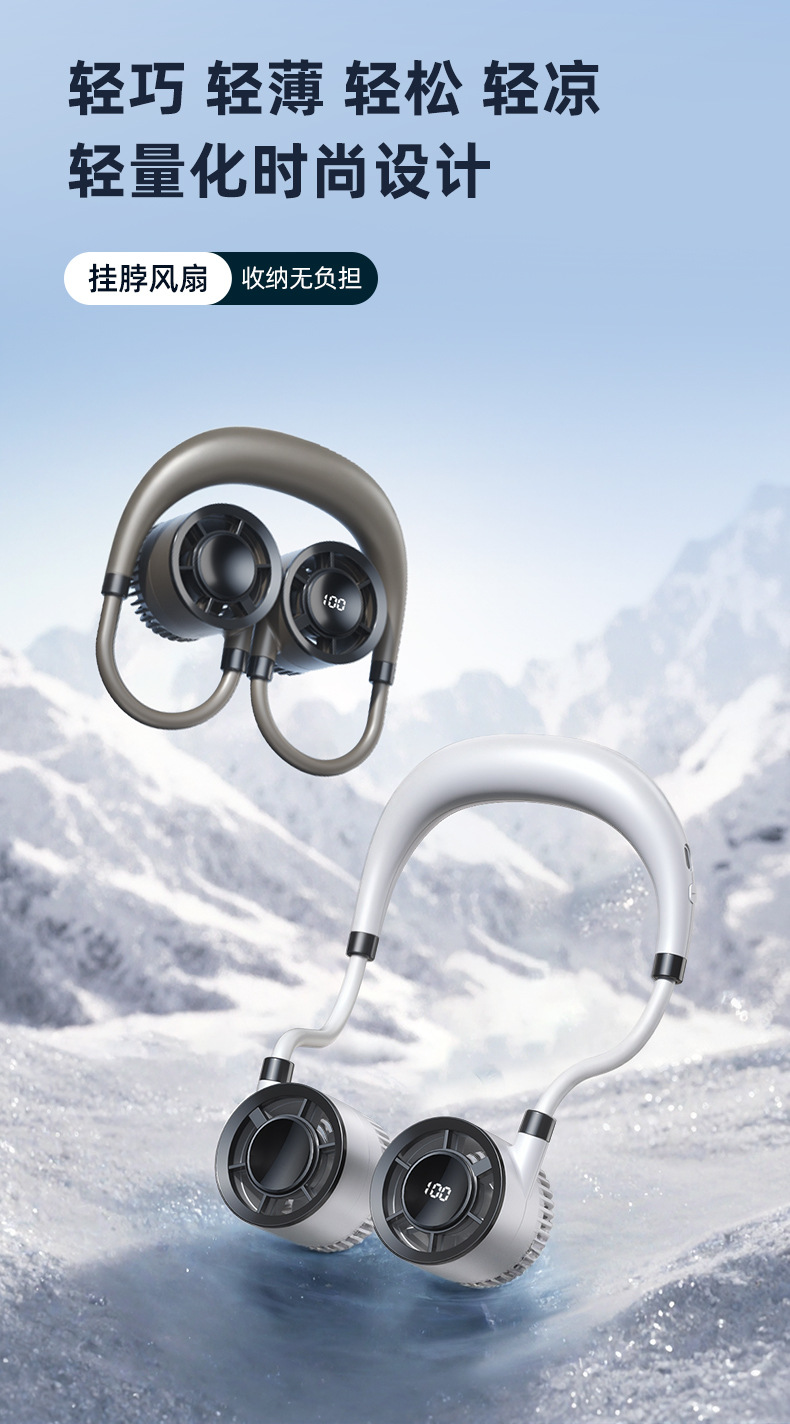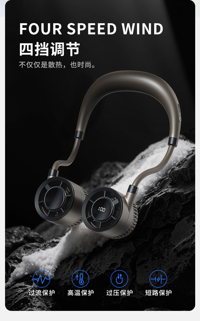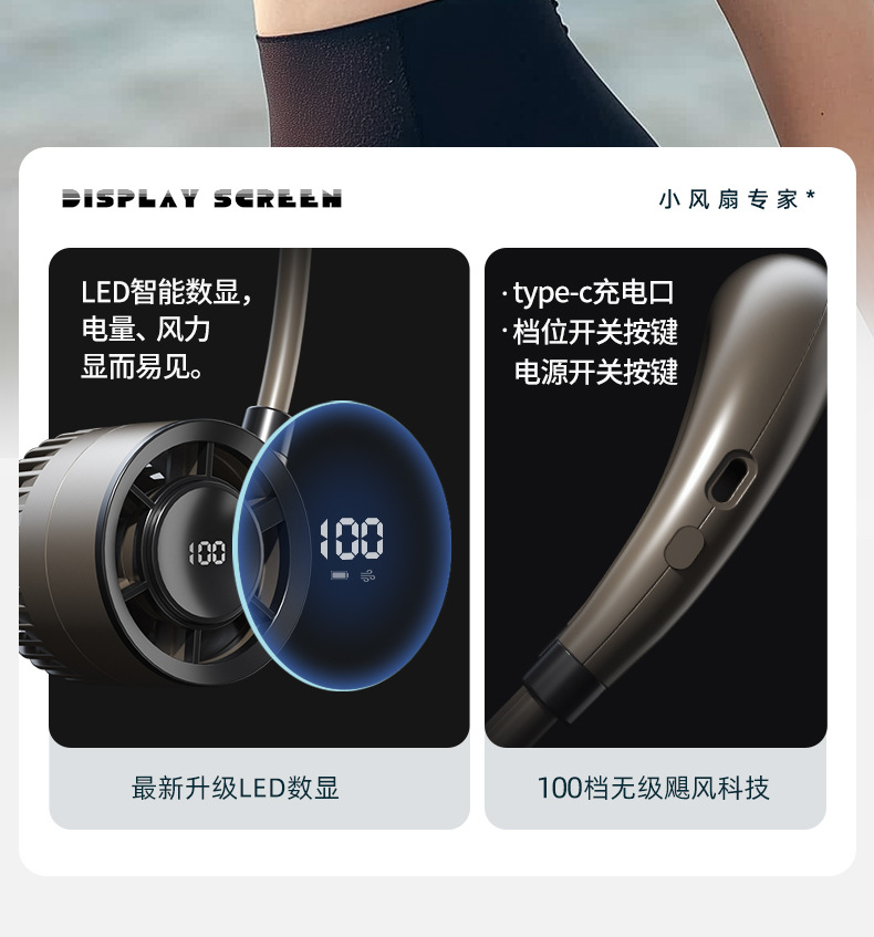 크로스보더 홀터넥 소형 팬, 디지털 디스플레이, 터보 스크린, 가볍고 시원하며 충전이 편리하며 스포츠용, 실내 및 실외용, 긴 배터리 수명