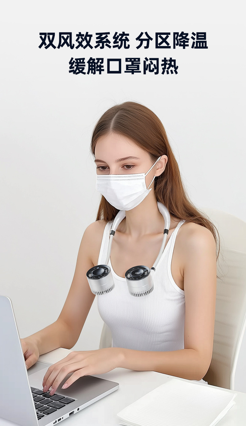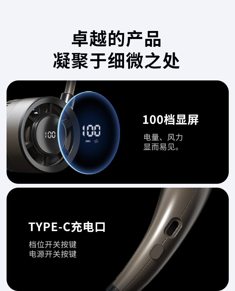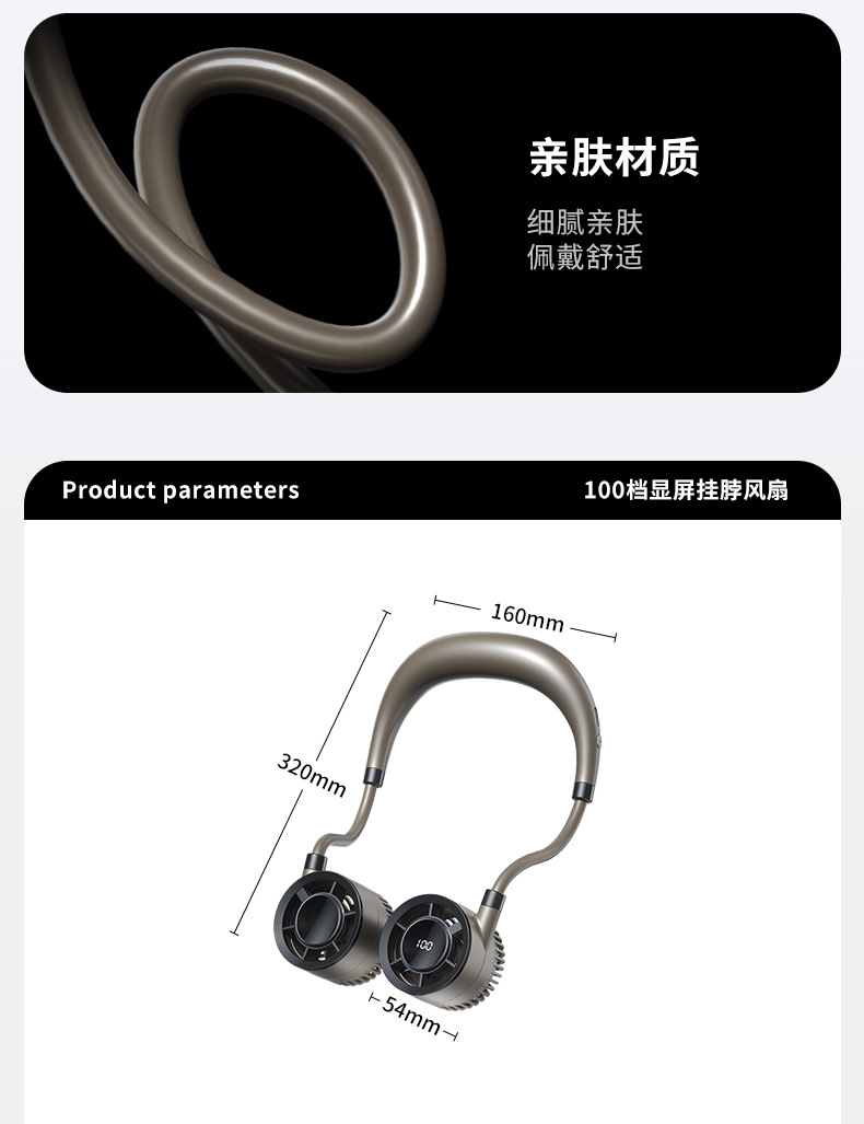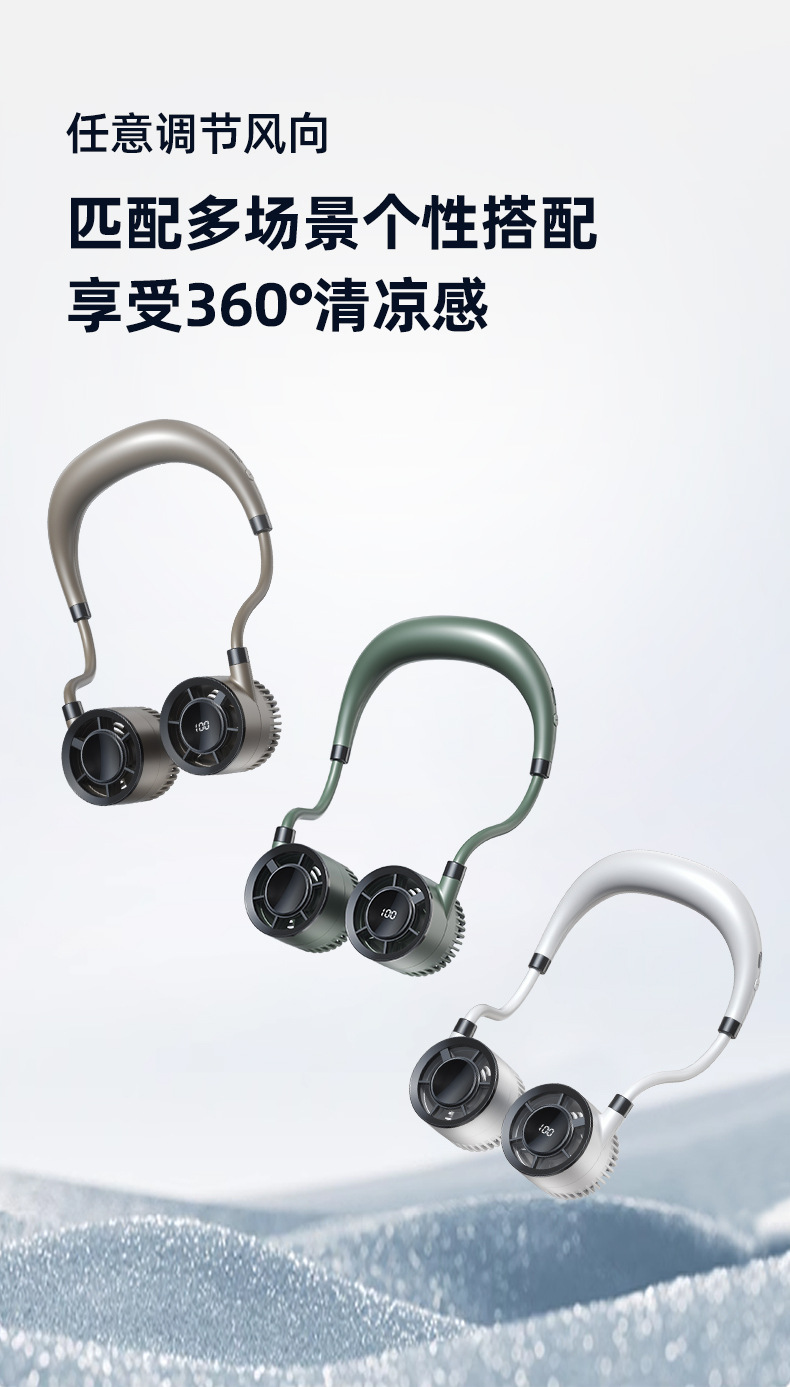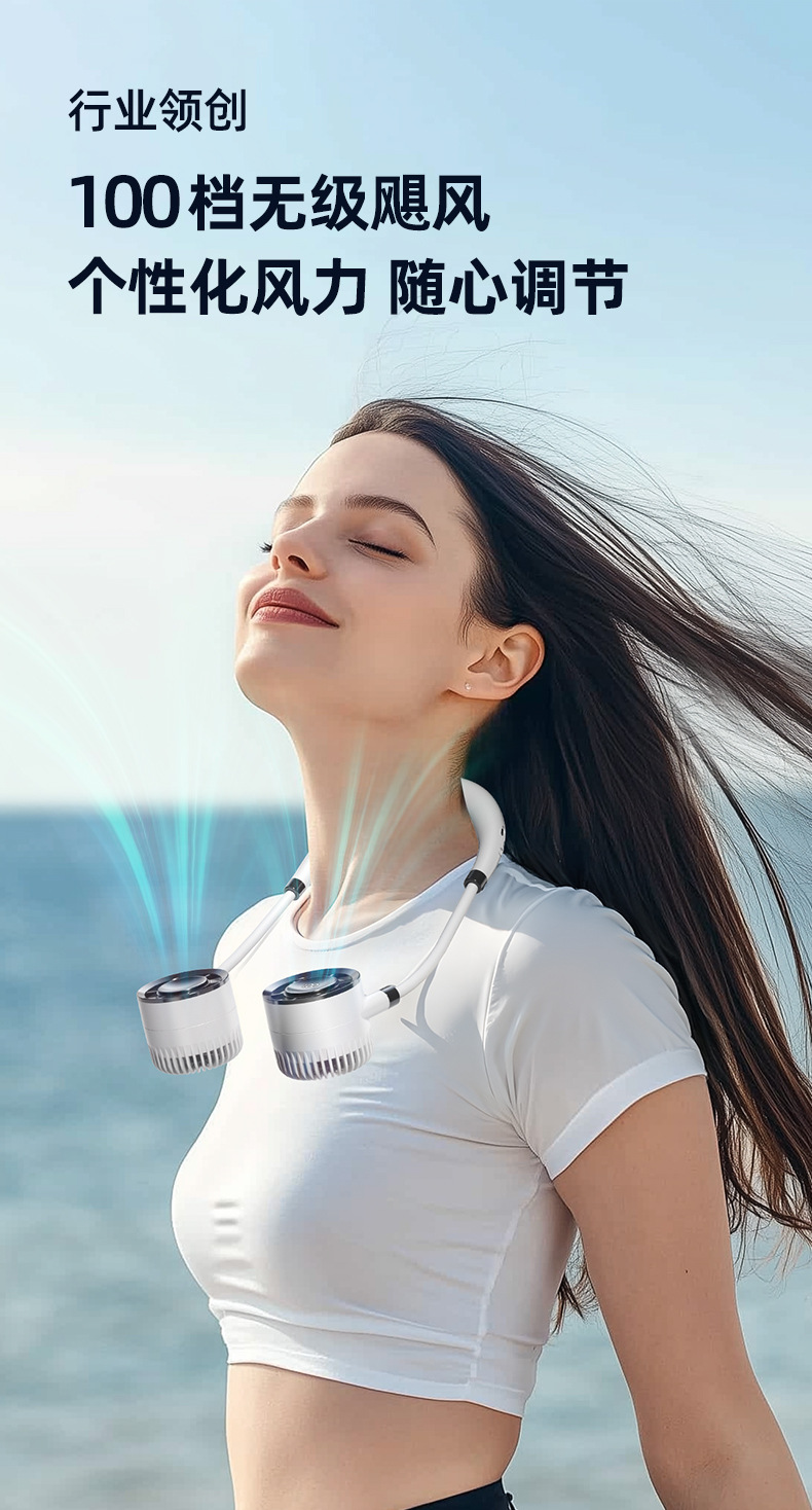 크로스보더 홀터넥 소형 팬, 디지털 디스플레이, 터보 스크린, 가볍고 시원하며 충전이 편리하며 스포츠용, 실내 및 실외용, 긴 배터리 수명