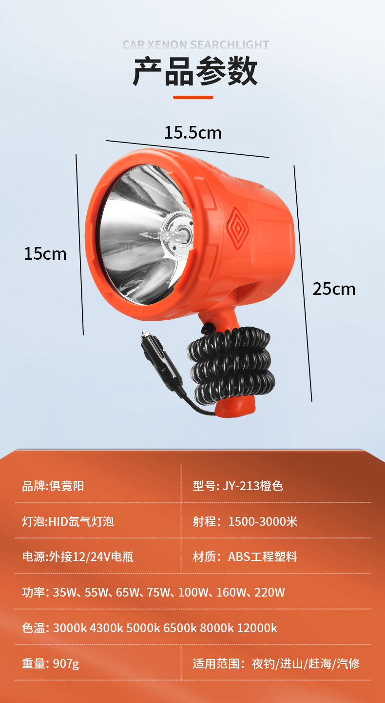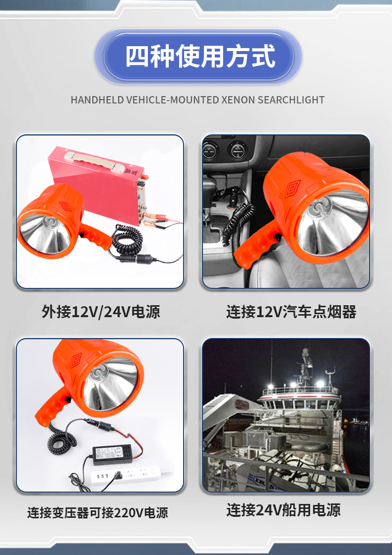 야외 12v 스포트라이트 장거리 손전등 강한 빛 핸드 헬드 크세논 탐조등 방수 자동차 바다 밤 낚시를 밝은 잡기