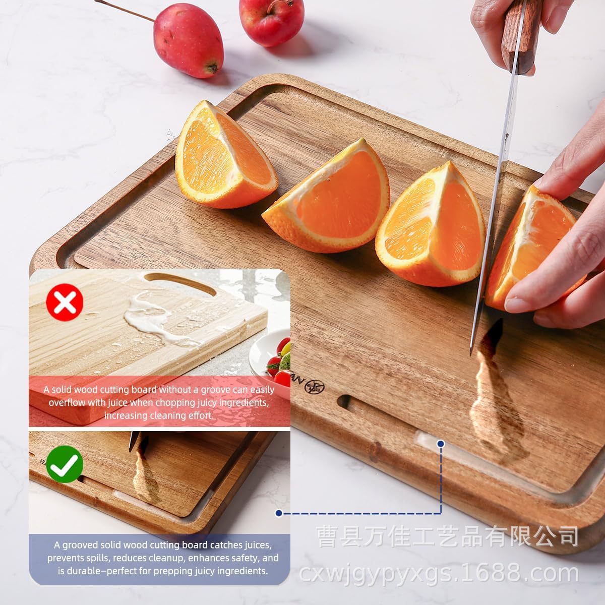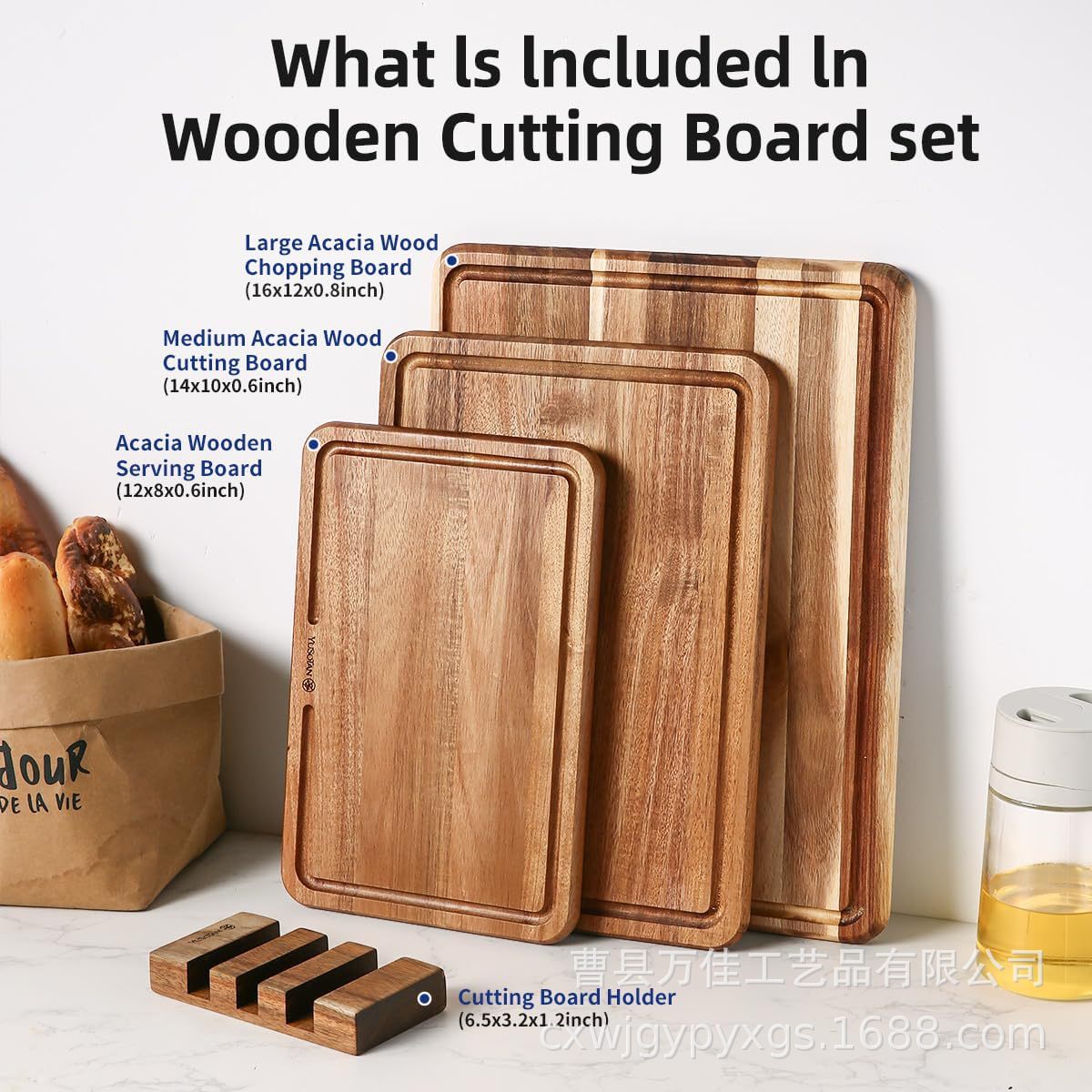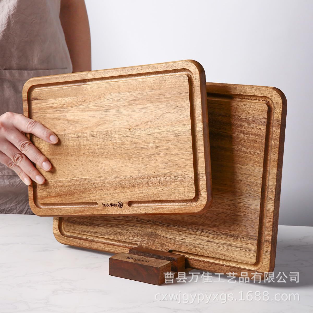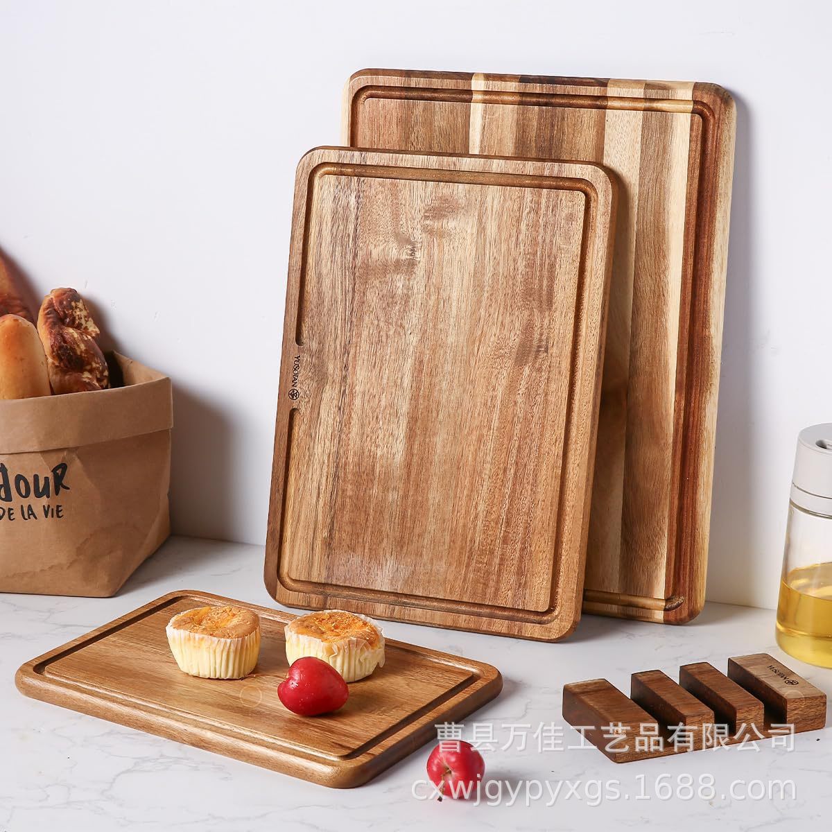 국경 간 아카시아 나무 델리 트레이 주방 직사각형 단단한 나무 도마 세트 가정용 나무 빵 스테이크 트레이스토어 가기