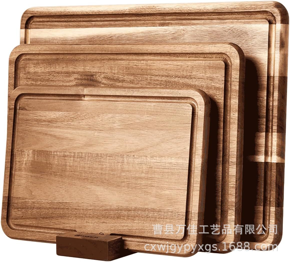 국경 간 아카시아 나무 델리 트레이 주방 직사각형 단단한 나무 도마 세트 가정용 나무 빵 스테이크 트레이