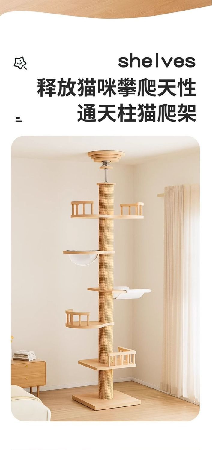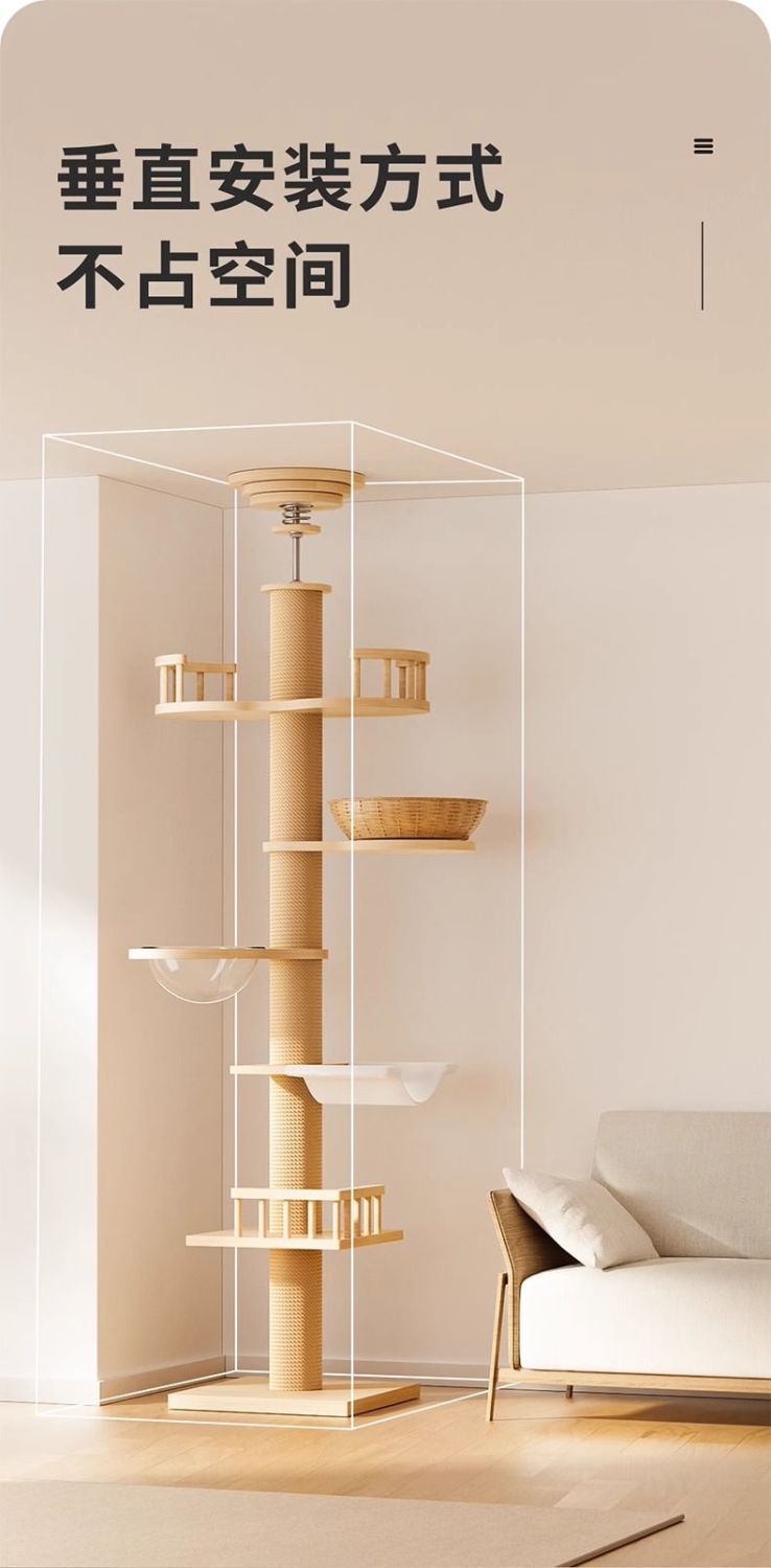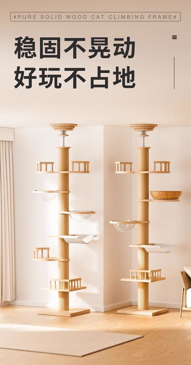 고양이 클라이밍 프레임은 단단한 목재가 아닌 면적을 차지하며, 천장까지 닿는 다층 대형 다층 기둥 PVC 고양이 클라이밍 프레임입니다.스토어 가기