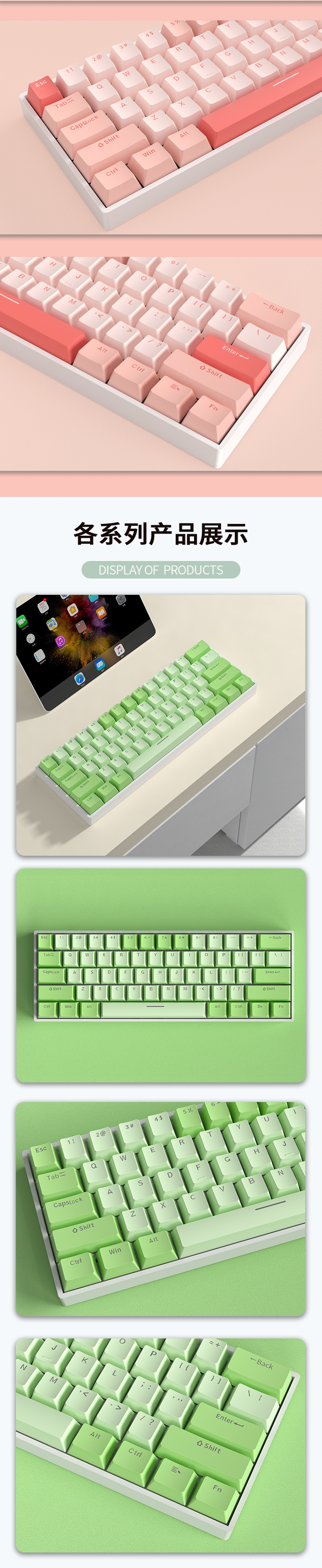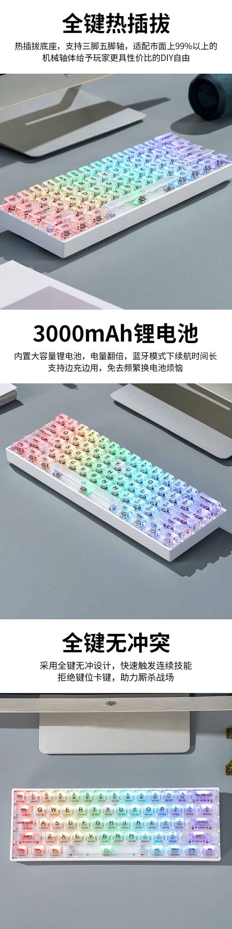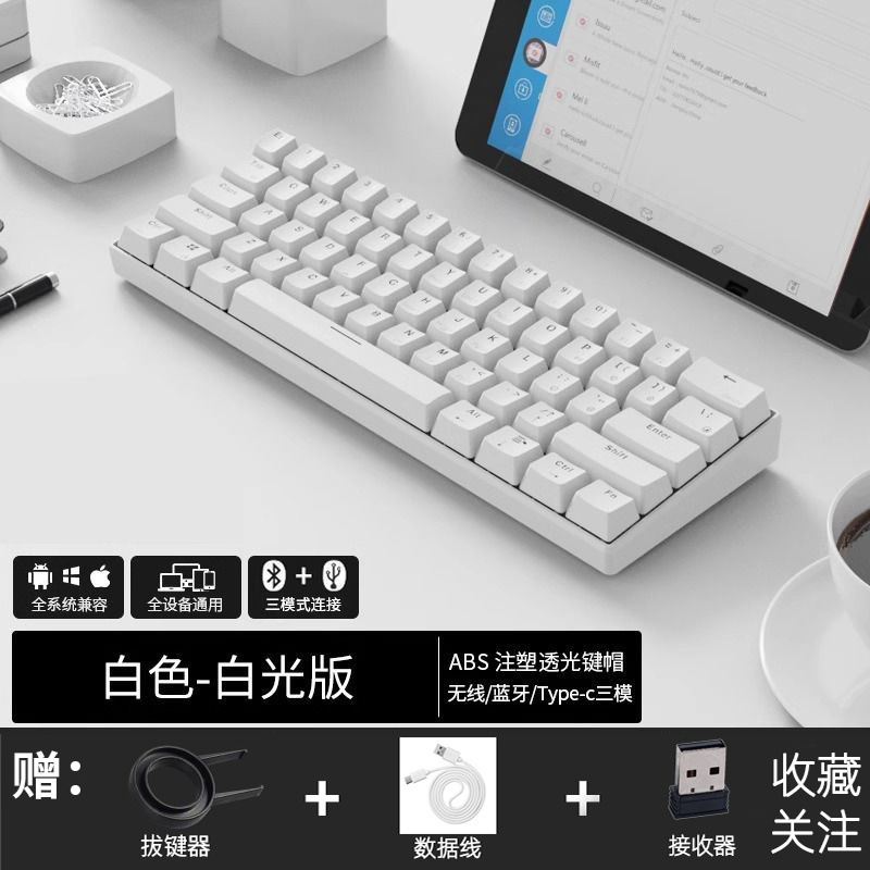 • 61키 백색광 버전 - 무선 3모드 버전 - 녹색 축 [풀 키 핫 스왑 가능]