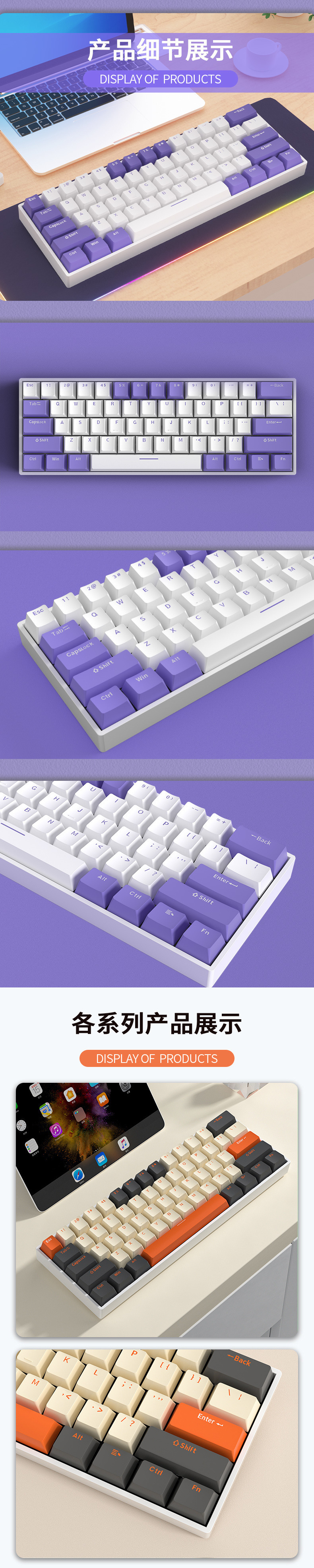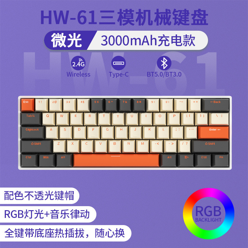 • [61키 RGB 블루베리 컬러 매칭] [3모드 무선 링크] - 브라운 스위치 [풀 키 핫스왑]