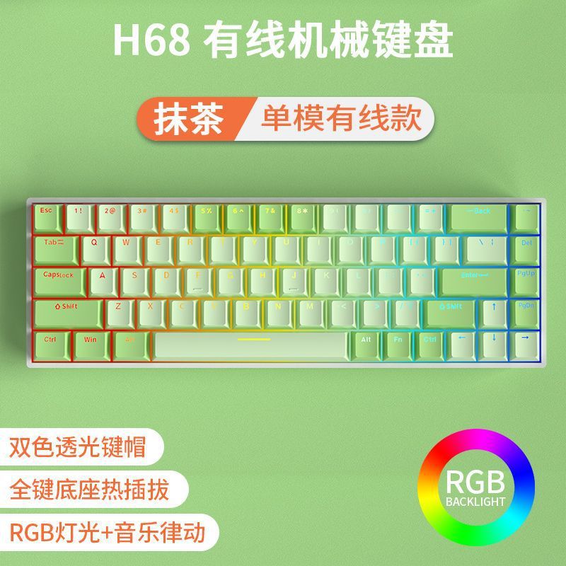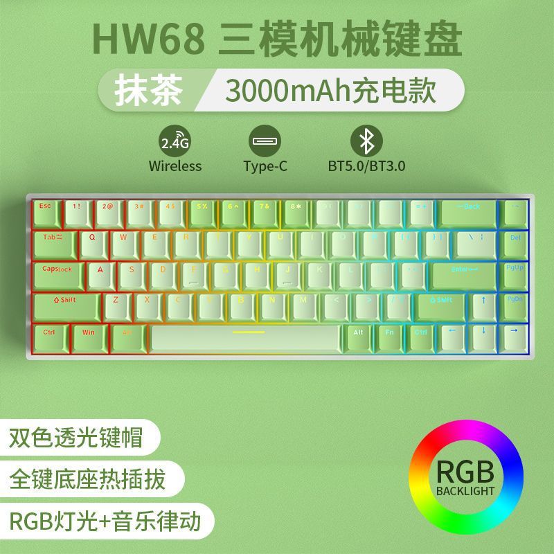 • [68키 RGB 말차 컬러 매칭] [3모드 무선 링크] - 녹색 축 [풀 키 핫스왑]