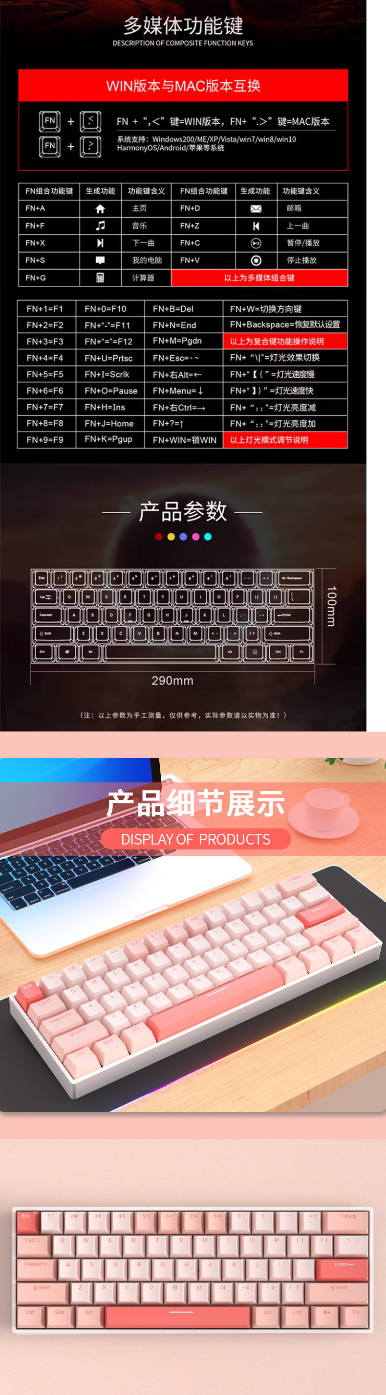 • [68키 RGB 벚꽃 컬러 매칭] [3모드 무선 링크] - 블랙 스위치 [풀 키 핫스왑]