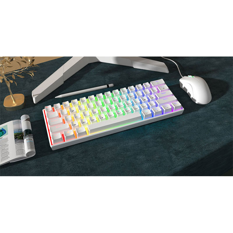 • [61키 흰색 RGB 조명 업그레이드 버전] [3모드 무선 링크] - 녹색 축 [풀 키 핫스왑]