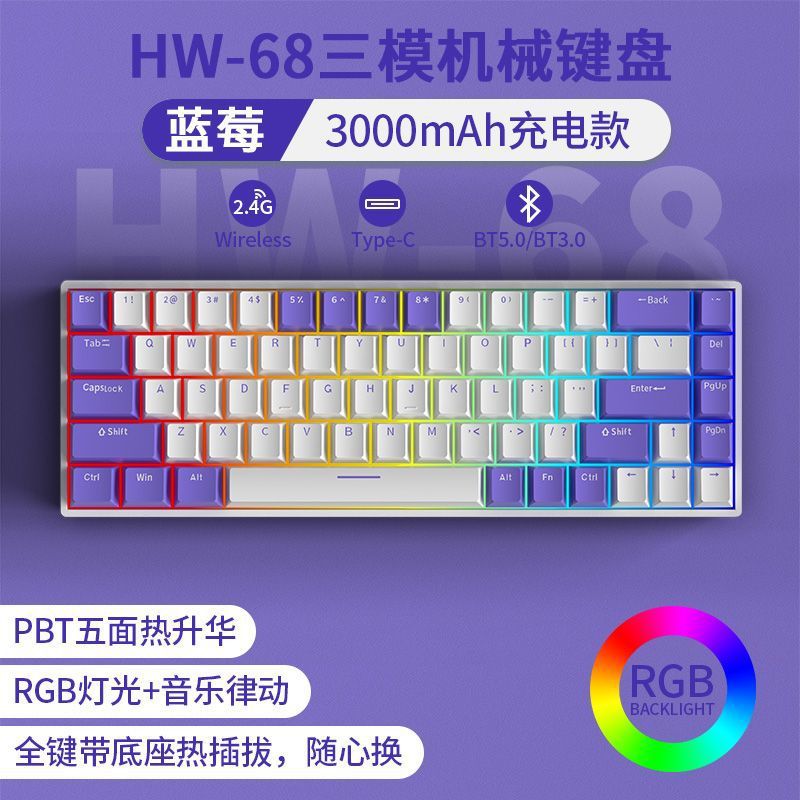 • [68키 RGB 블루베리 컬러 매칭] [3모드 무선 링크] - 빨간색 축 [풀 키 핫스왑]