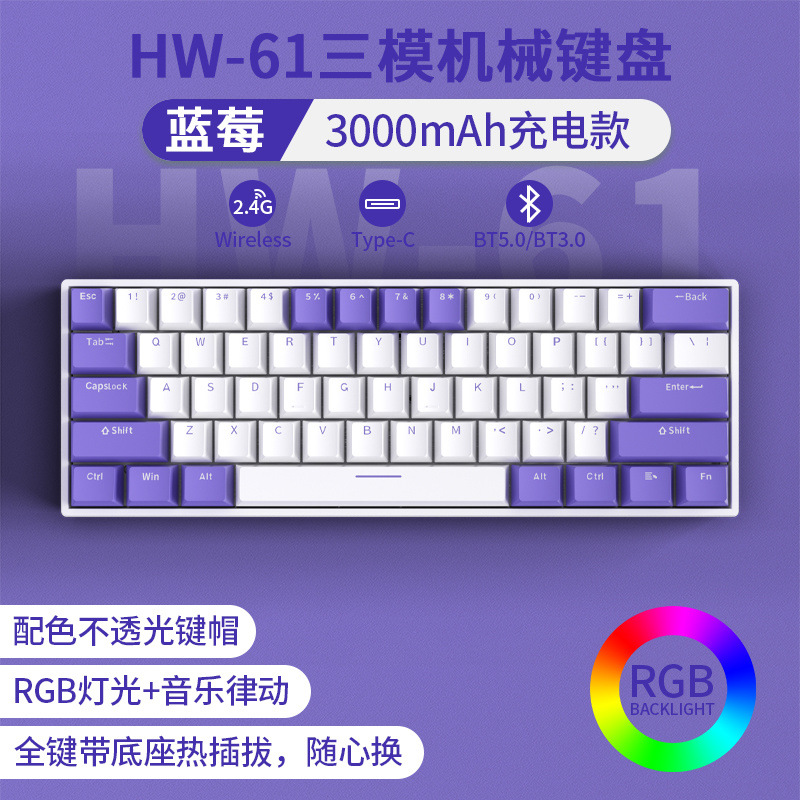 • [61키 RGB 블루베리 컬러 매칭] [3모드 무선 링크] - 녹색 축 [풀 키 핫스왑]