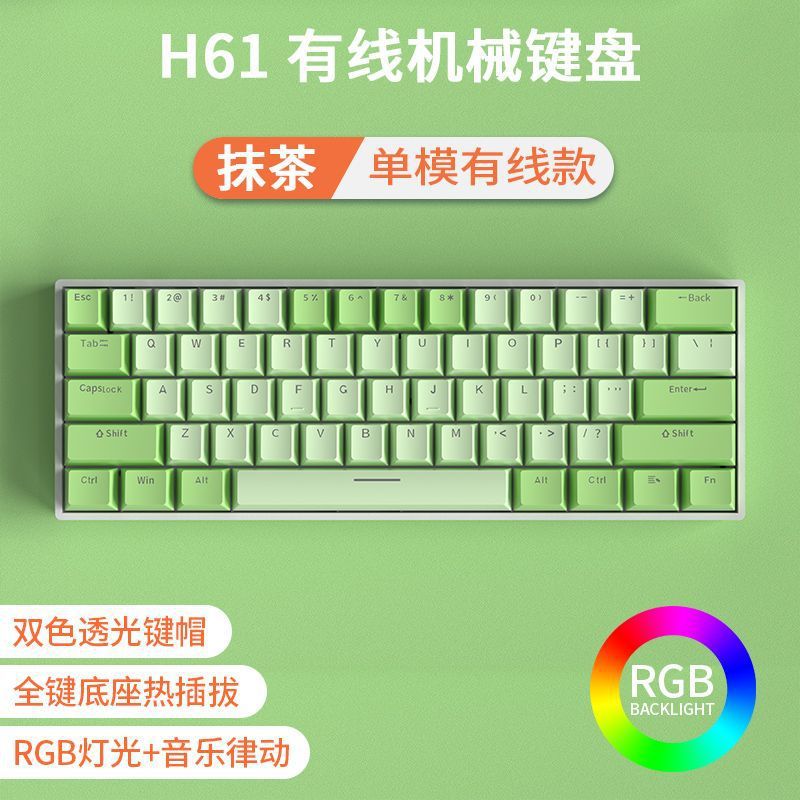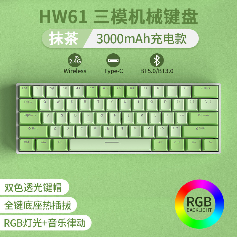• [61키 RGB 말차 컬러 매칭] [3모드 무선 링크] - 빨간색 축 [풀 키 핫스왑]