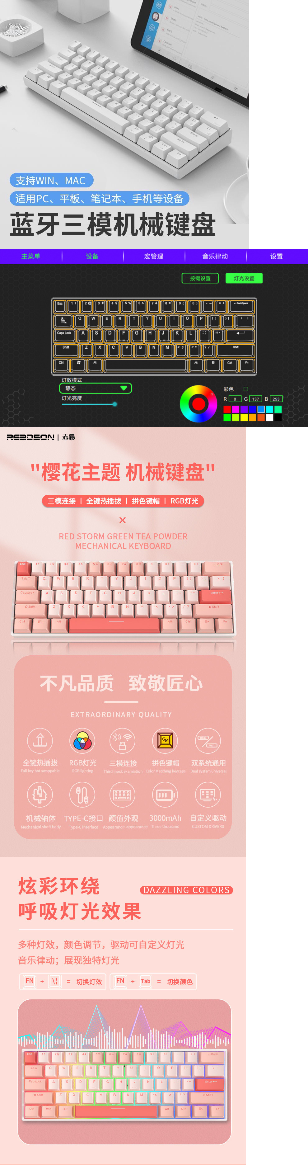 • [68키 RGB 벚꽃 컬러 매칭] [3모드 무선 링크] - 녹색 축 [풀 키 핫스왑]
