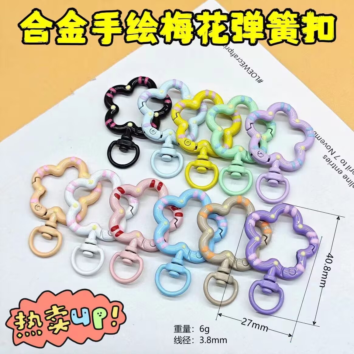 손으로 그린 컬러 페인트 꽃 봄 버클 캔디 컬러 금속 오일 드롭 키 체인 DIY 쥬얼리 버클 펜던트 액세서리스토어 가기