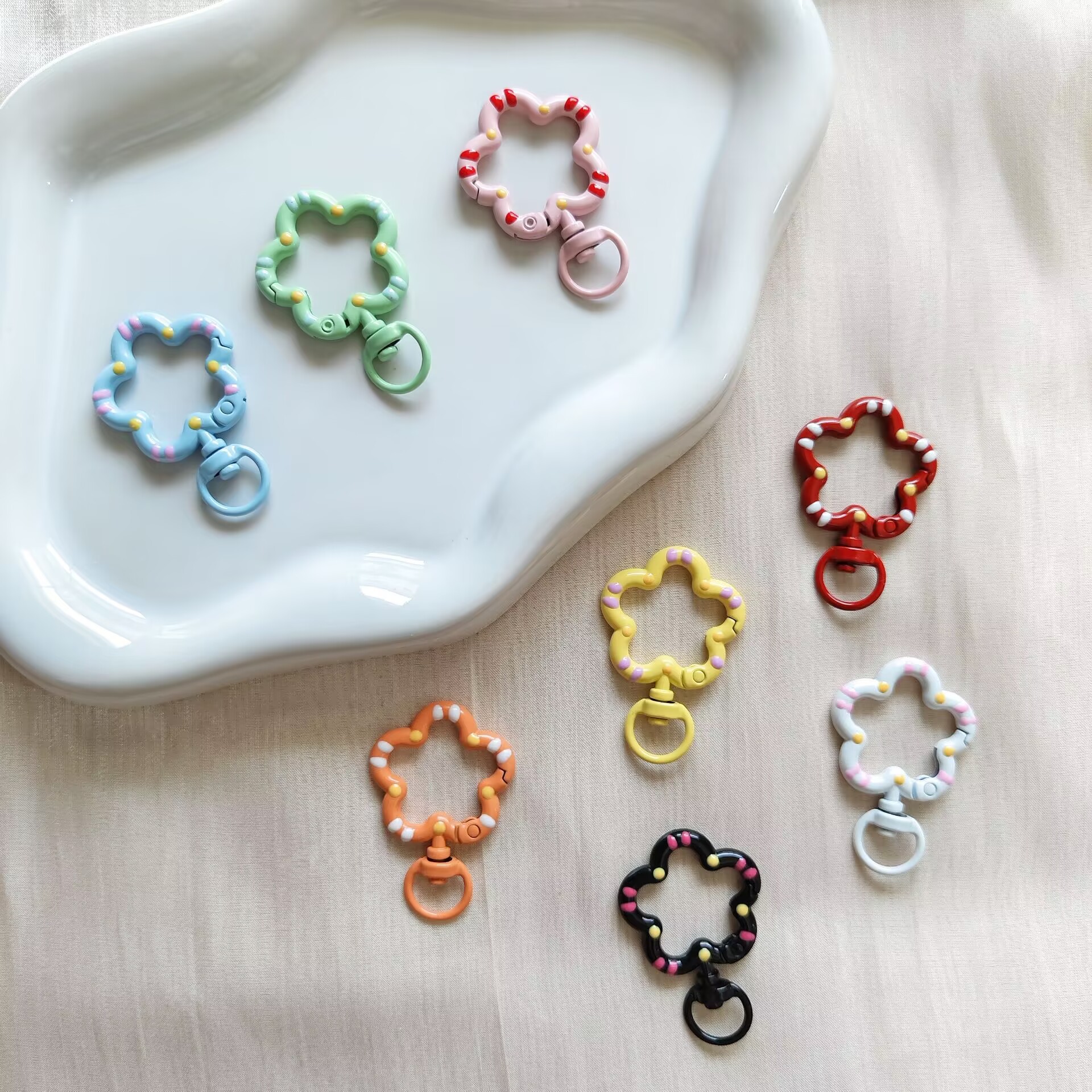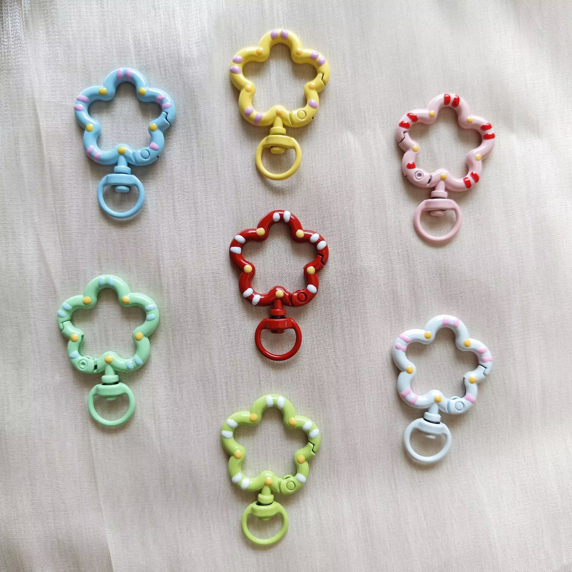 손으로 그린 컬러 페인트 꽃 봄 버클 캔디 컬러 금속 오일 드롭 키 체인 DIY 쥬얼리 버클 펜던트 액세서리