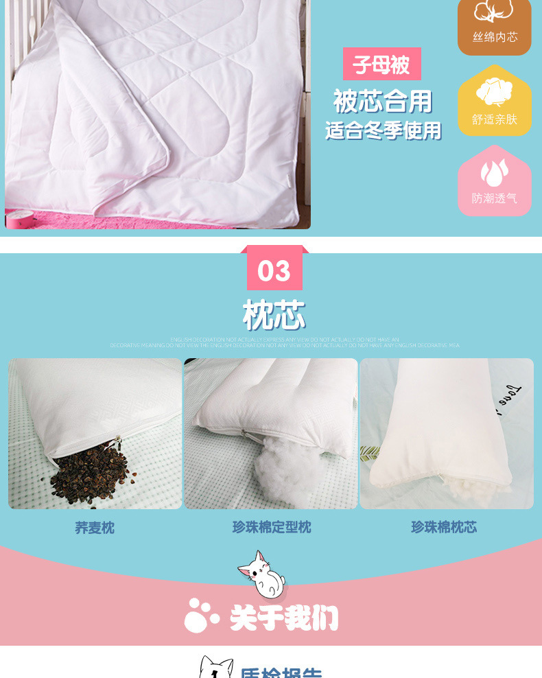 温馨提示:床品可绣学校logo,订制任意尺寸,无纺布手提袋5元/个,如需其他套餐组合请联系我们。