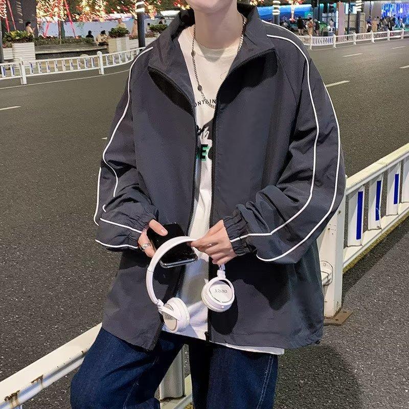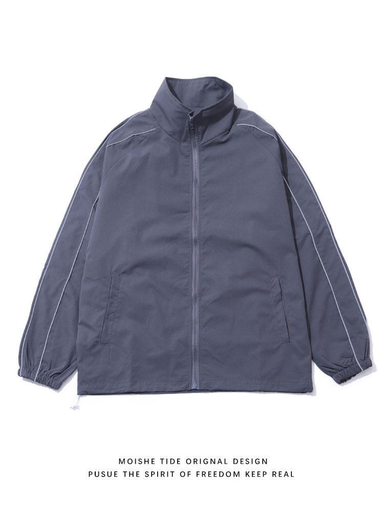 가을에는 남성용 다크 그레이 컬러의 대형 홍콩 스타일 커플 야외 등산 레저 스포츠 스탠드 칼라 재킷 정장이 주로 추천됩니다.