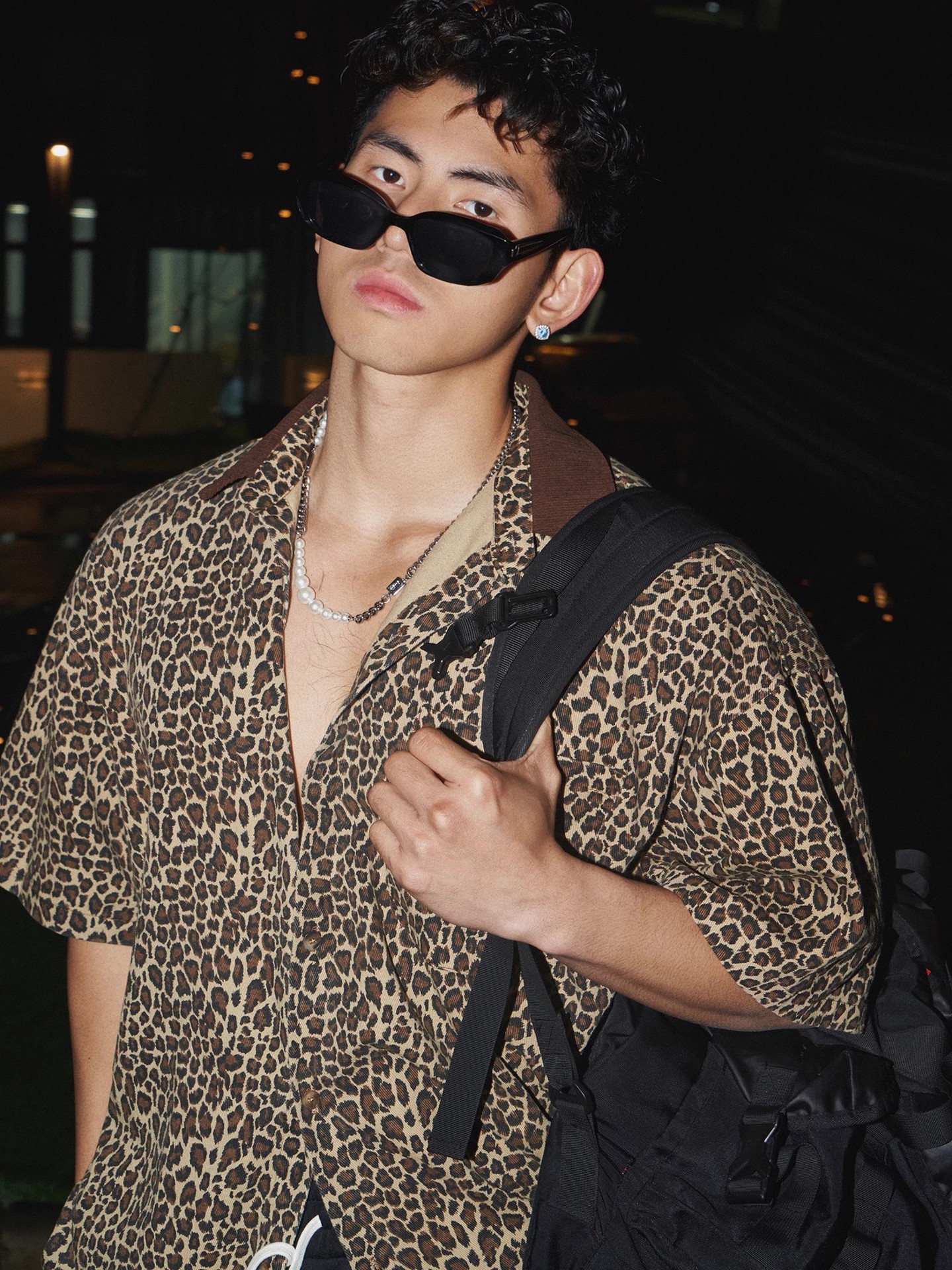 미국 빈티지 표범 인쇄 반팔 셔츠 남성 여름 새로운 스타일 잘 생긴 유행 브랜드 느슨한 7부 소매 셔츠스토어 가기