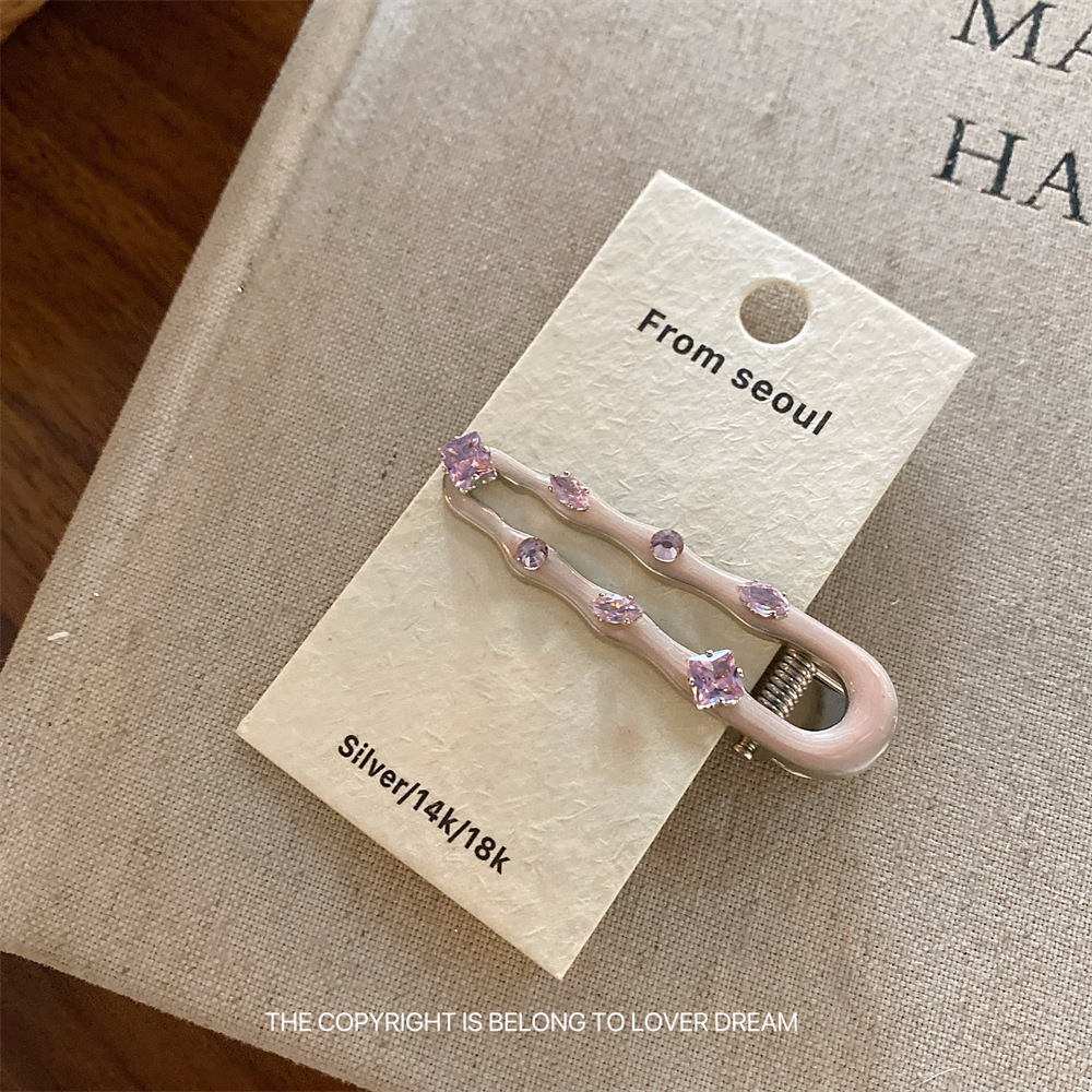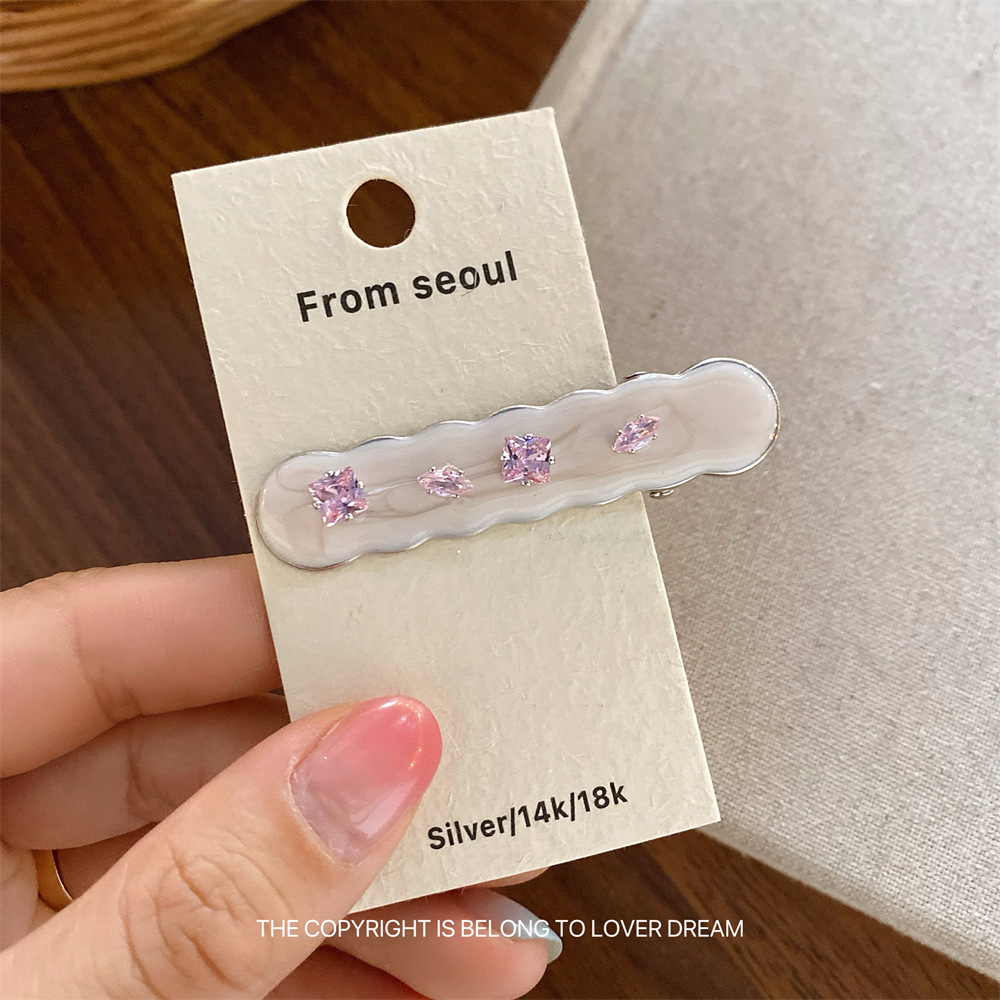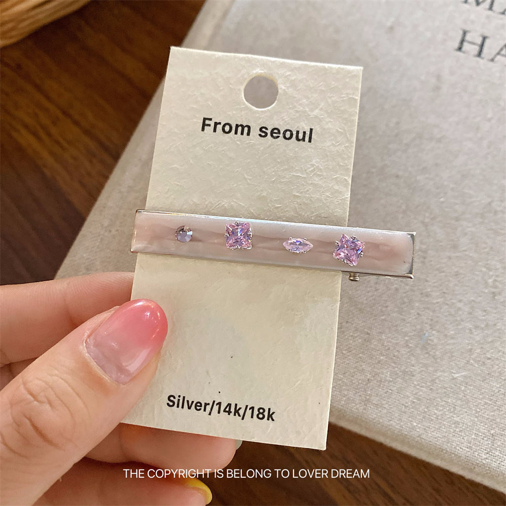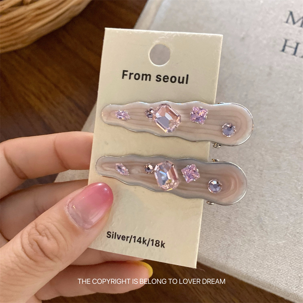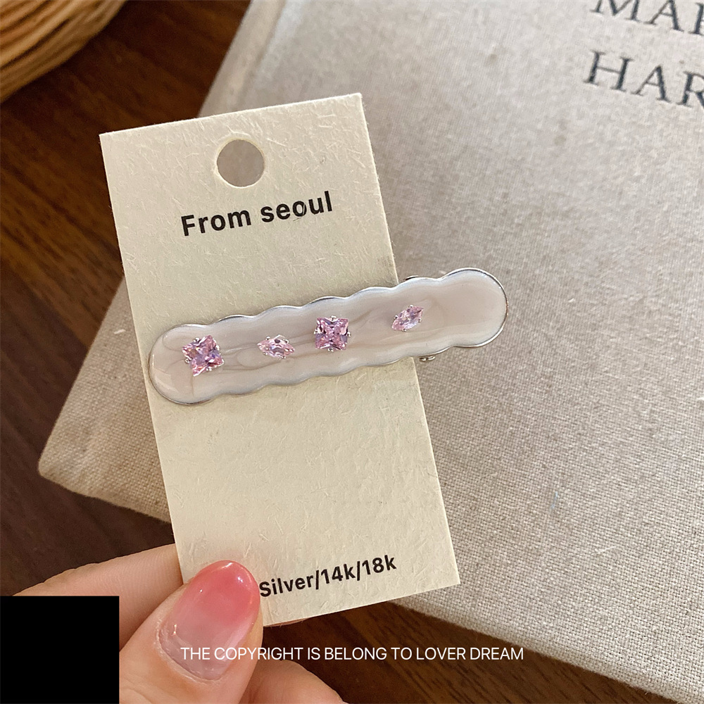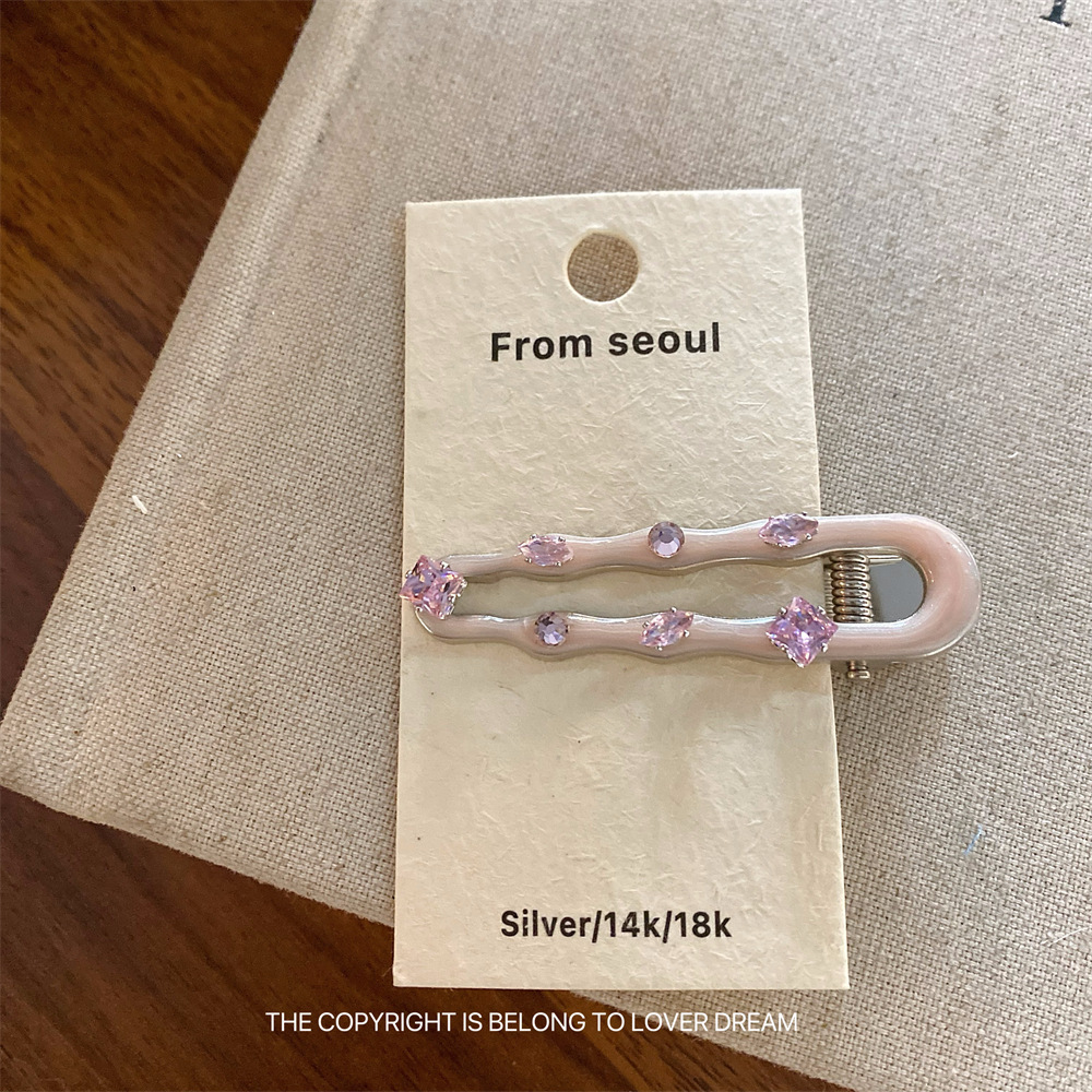 한국의 새로운 핑크 라인스톤 오일 드립 기하학 머리핀, 달콤하고 패셔너블한 앞머리 클립, 덕빌 클립, 헤어 액세서리스토어 가기