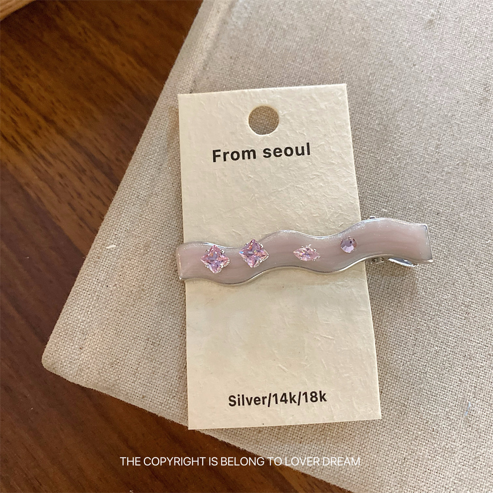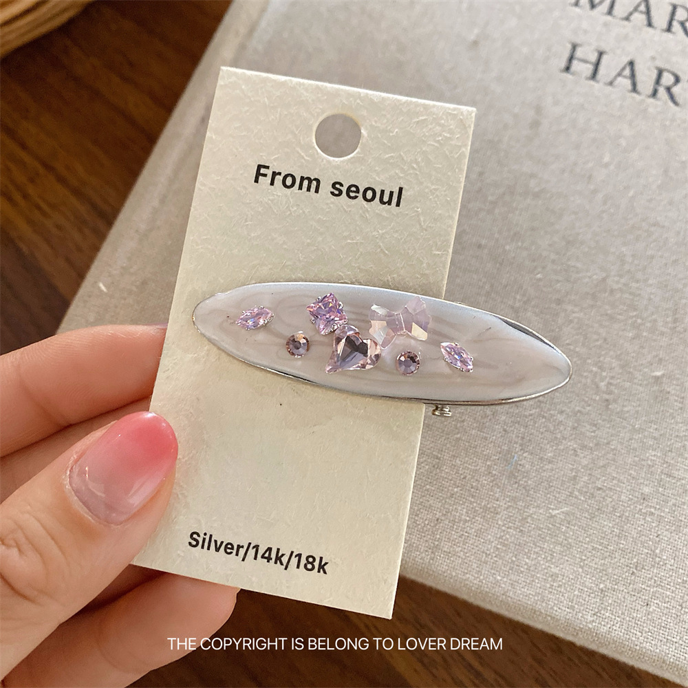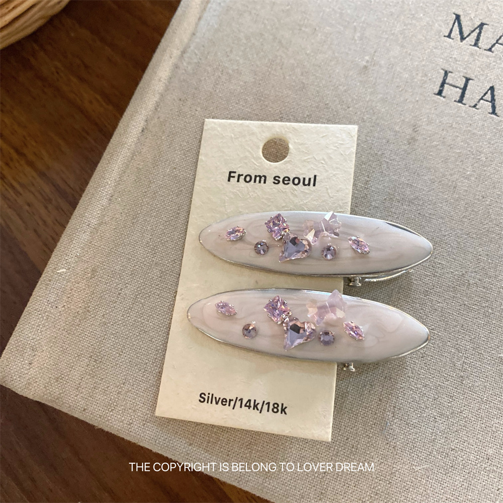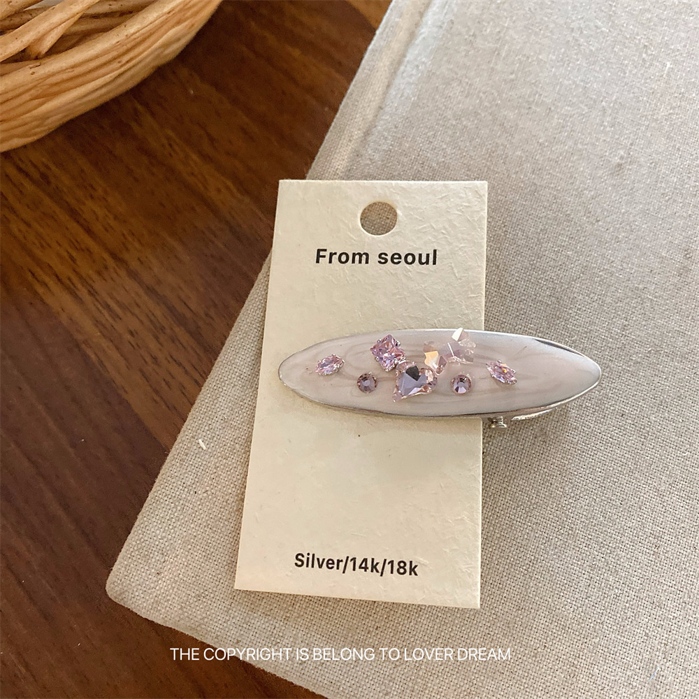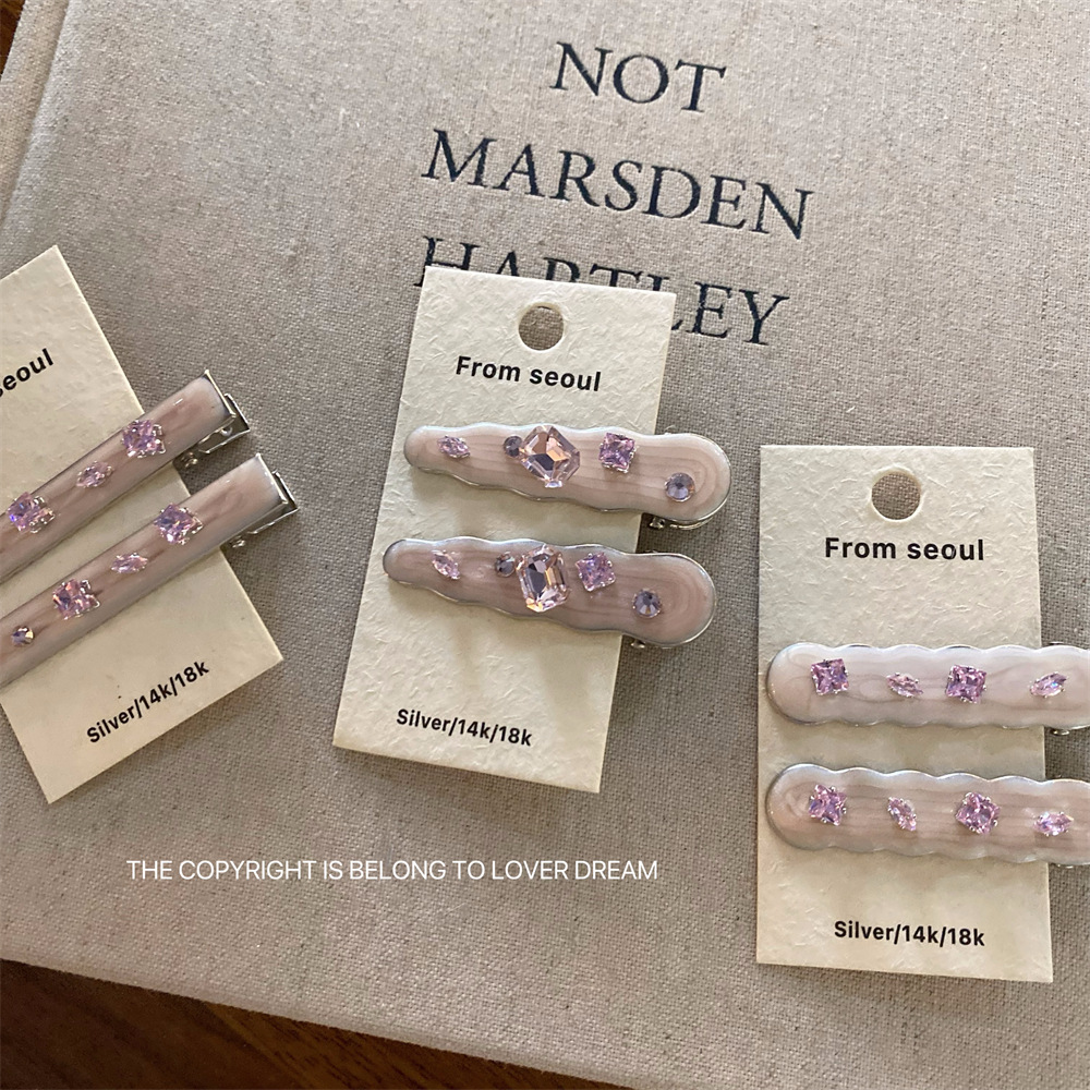 한국의 새로운 핑크 라인스톤 오일 드립 기하학 머리핀, 달콤하고 패셔너블한 앞머리 클립, 덕빌 클립, 헤어 액세서리스토어 가기