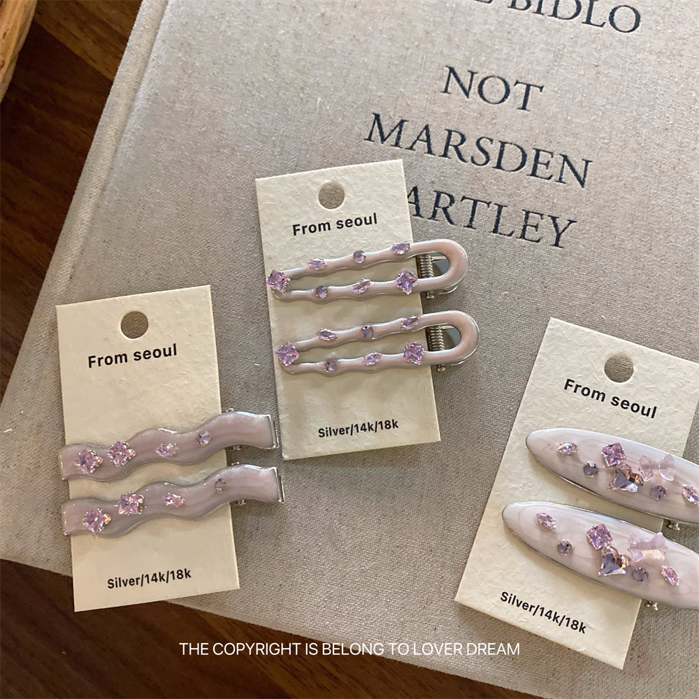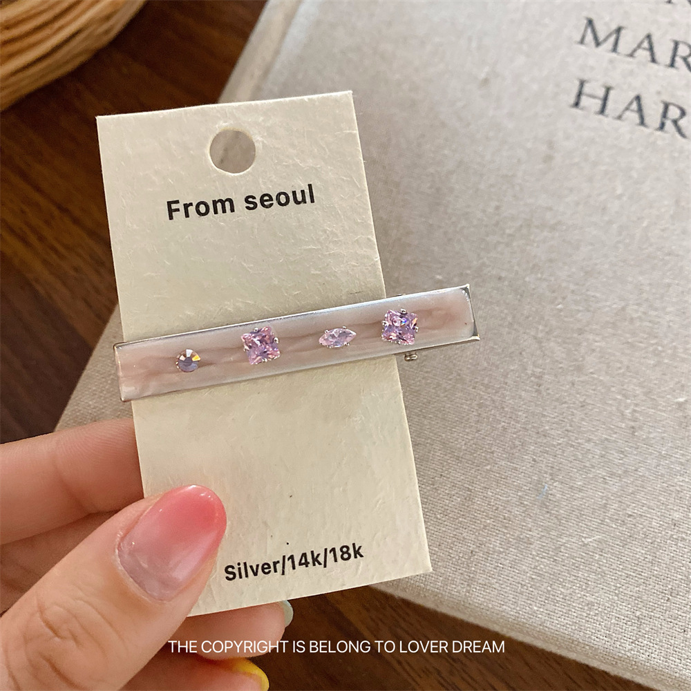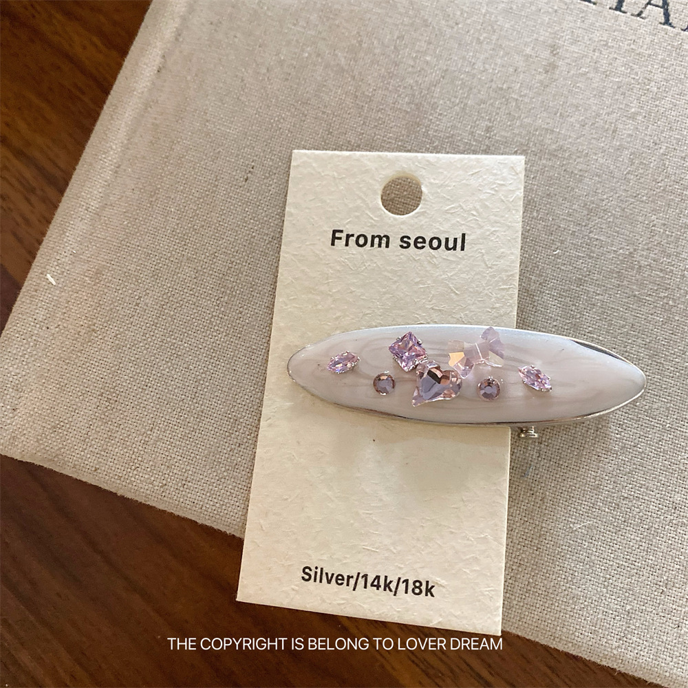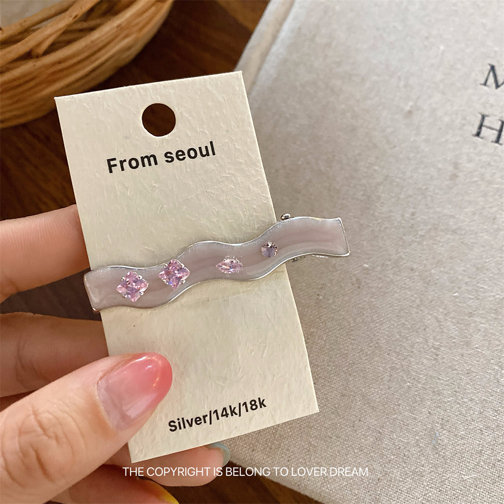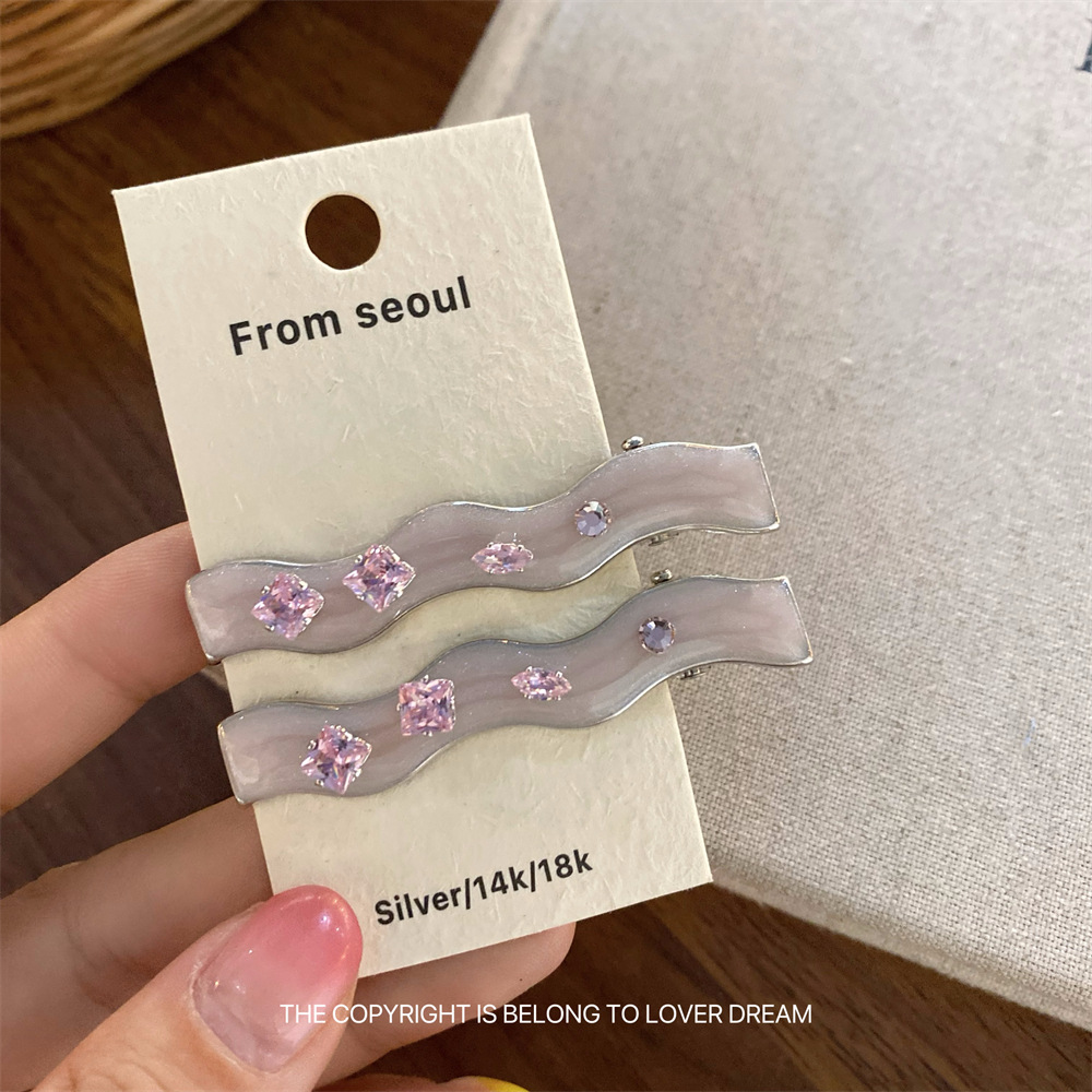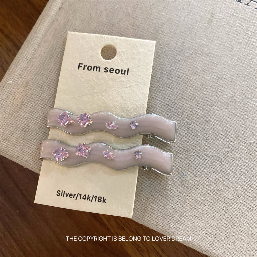 한국의 새로운 핑크 라인스톤 오일 드립 기하학 머리핀, 달콤하고 패셔너블한 앞머리 클립, 덕빌 클립, 헤어 액세서리스토어 가기