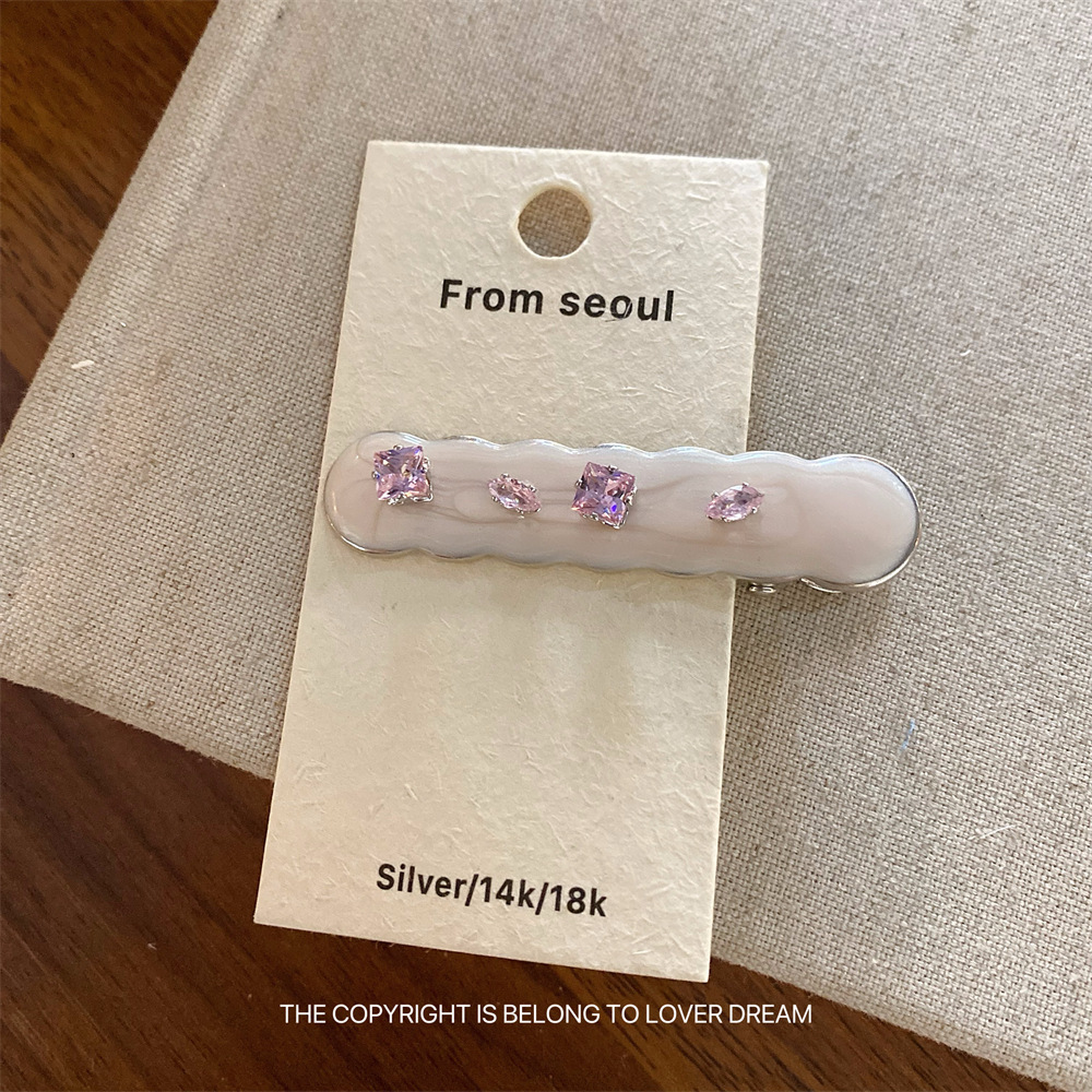 한국의 새로운 핑크 라인스톤 오일 드립 기하학 머리핀, 달콤하고 패셔너블한 앞머리 클립, 덕빌 클립, 헤어 액세서리