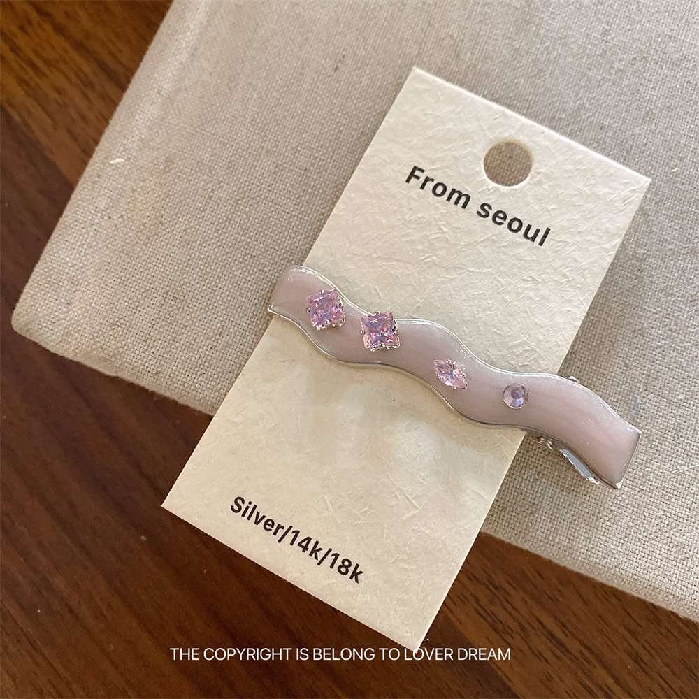 • 핑크 라인스톤 핑크 오일 드리핑 웨이브 포인티드 헤어 클립