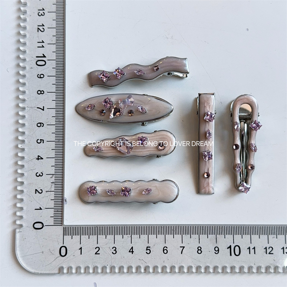 • 핑크 라인스톤 핑크 오일 드롭 웨이브 덕빌 클립 헤어 클립