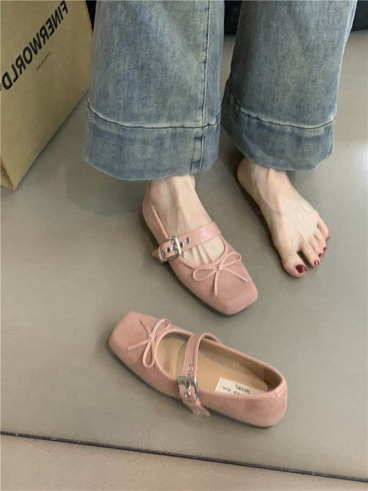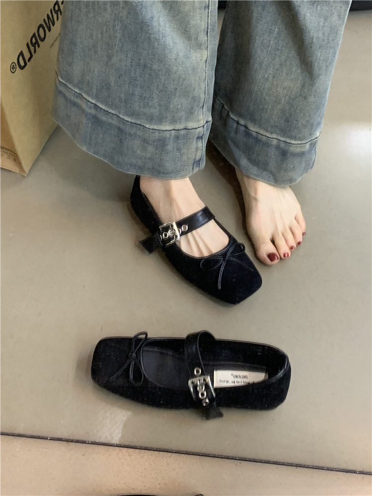 2025 인터넷 인기있는 스퀘어 헤드 여성 신발 가을 새로운 플랫 활 싱글 신발 발레 실버 벨트 버클 메리 제인 신발스토어 가기