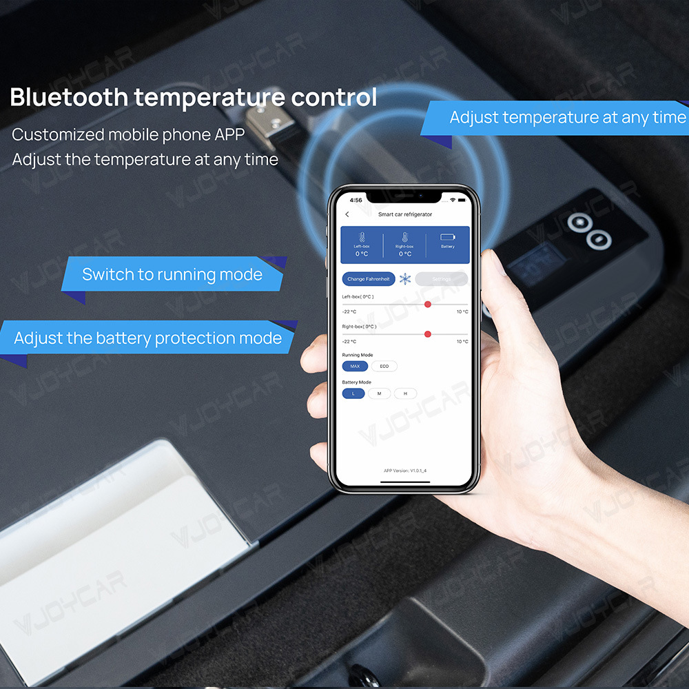 ③:快速制冷与智能控制:配备高性能压缩机,可快速制冷至 - 22℃。支持蓝牙连接 APP 控制,用户可随时调节温度、切换运行模式和设置电池保护模式。