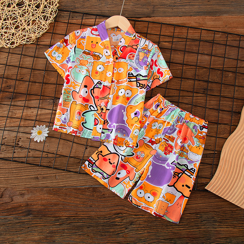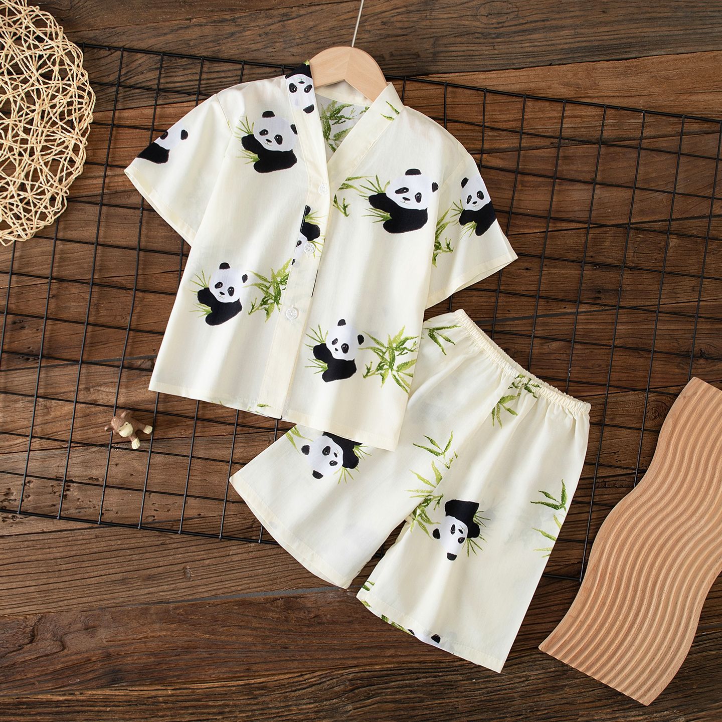 여름 어린이 반팔 잠옷, 면 실크, 남아 및 여아용 아이스 실크 양복, 가디건, 면 실크 에어컨 가정복, 얇은 스타일스토어 가기