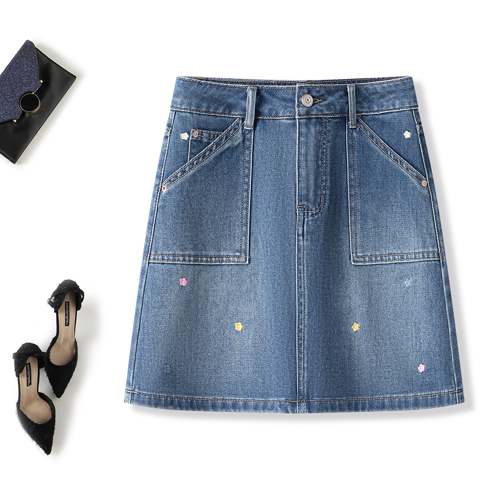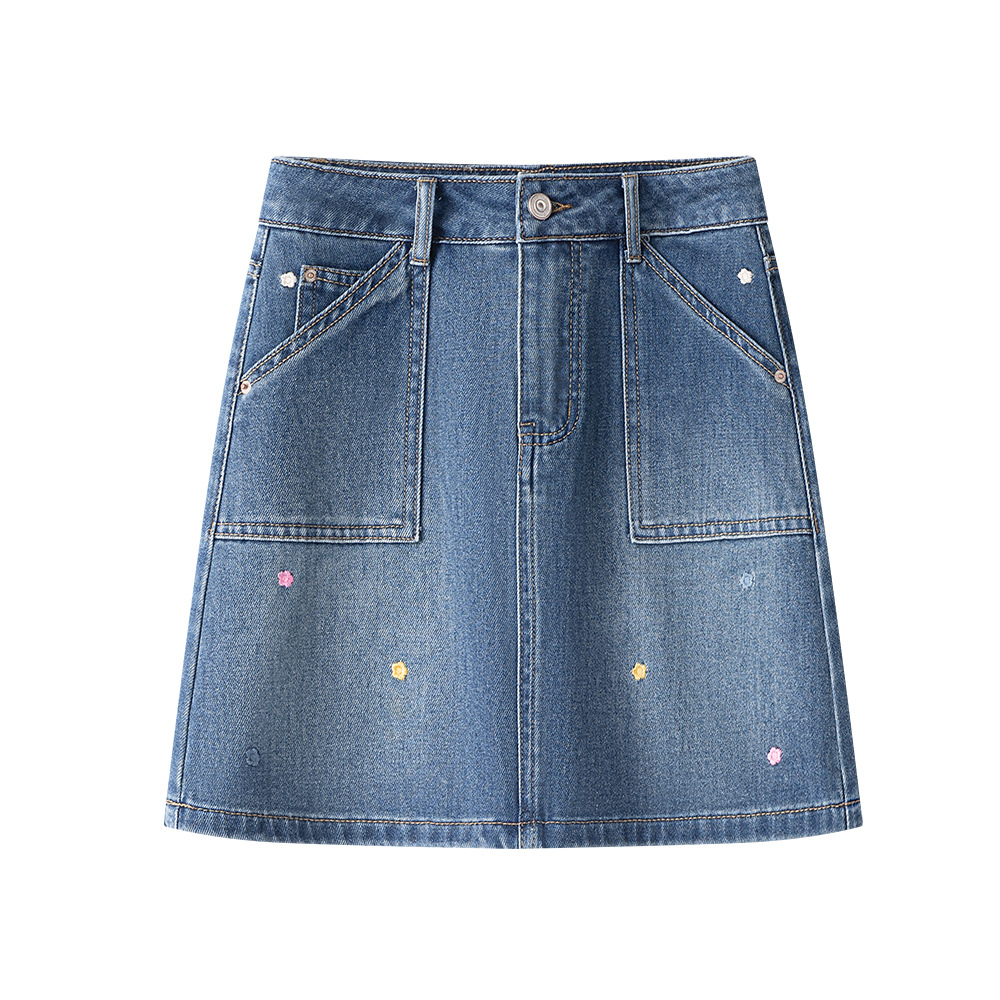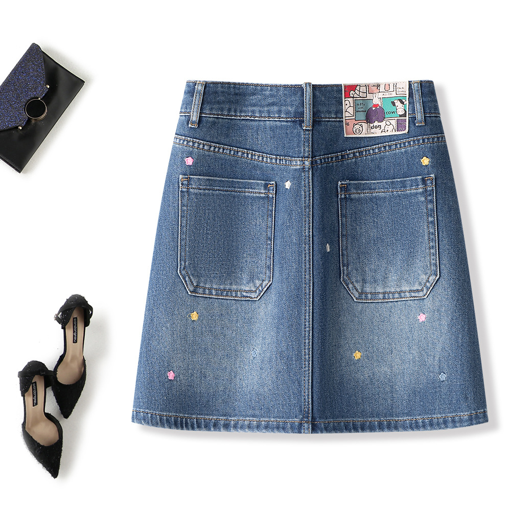 [고품질] 노출방지 미니스커트, 활용도 높은 슬리밍 텐셀 리오셀 헤비 자수 데님 스커트스토어 가기