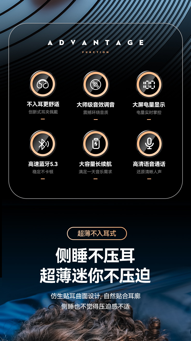국경 간 뼈 전도 수면 헤드셋 Huaqiang 북쪽 무선 블루투스 헤드셋 귀 소음 감소 귀 장착 바구니 이빨 헤드셋