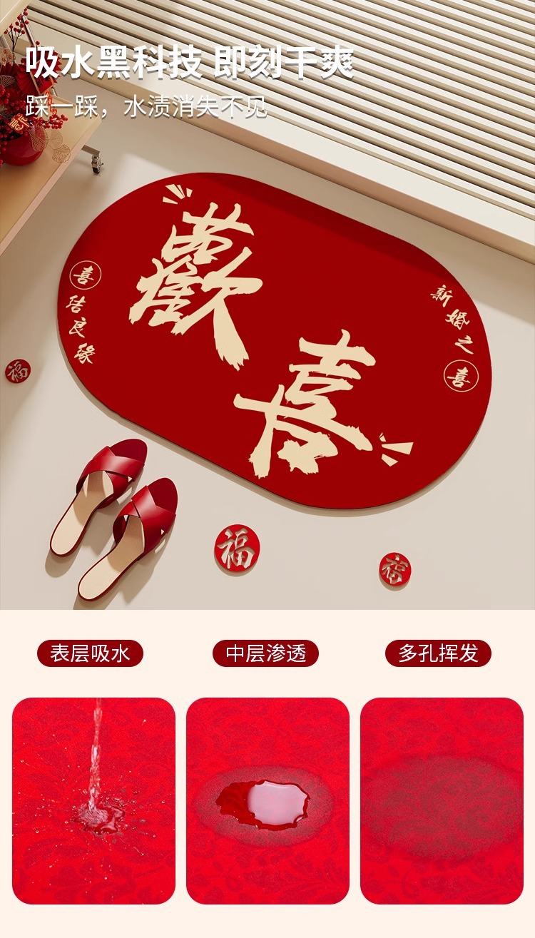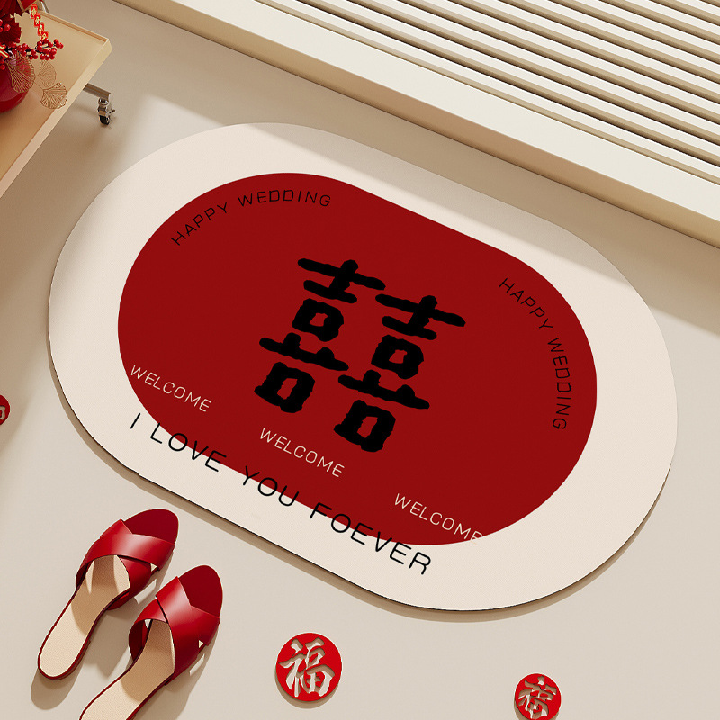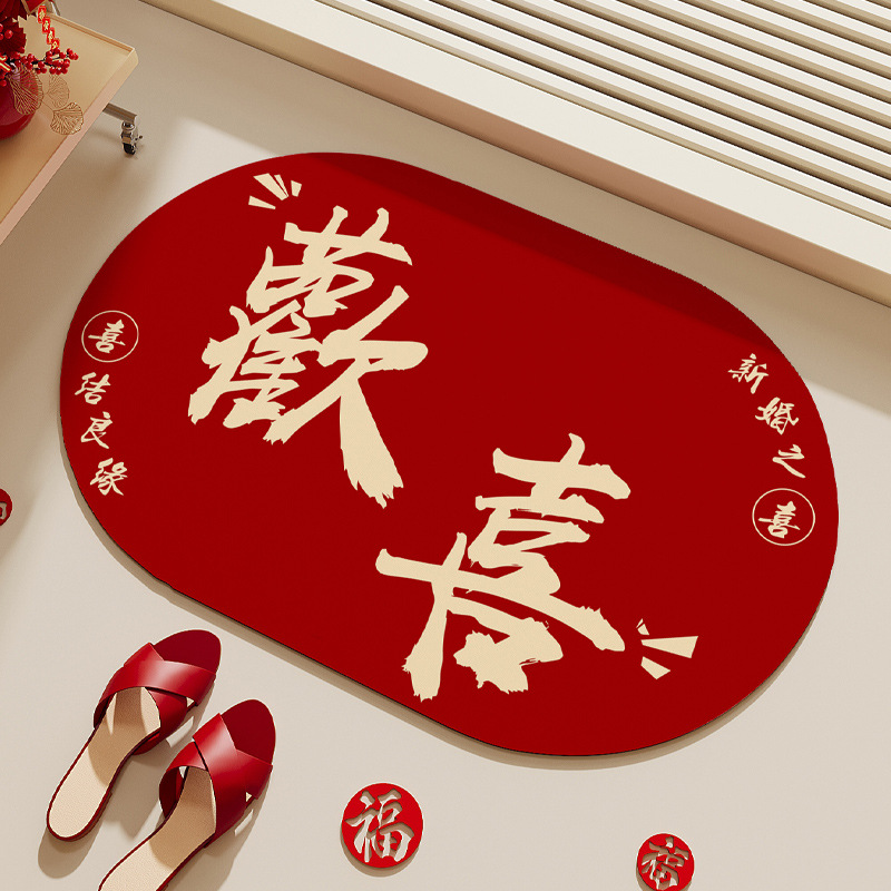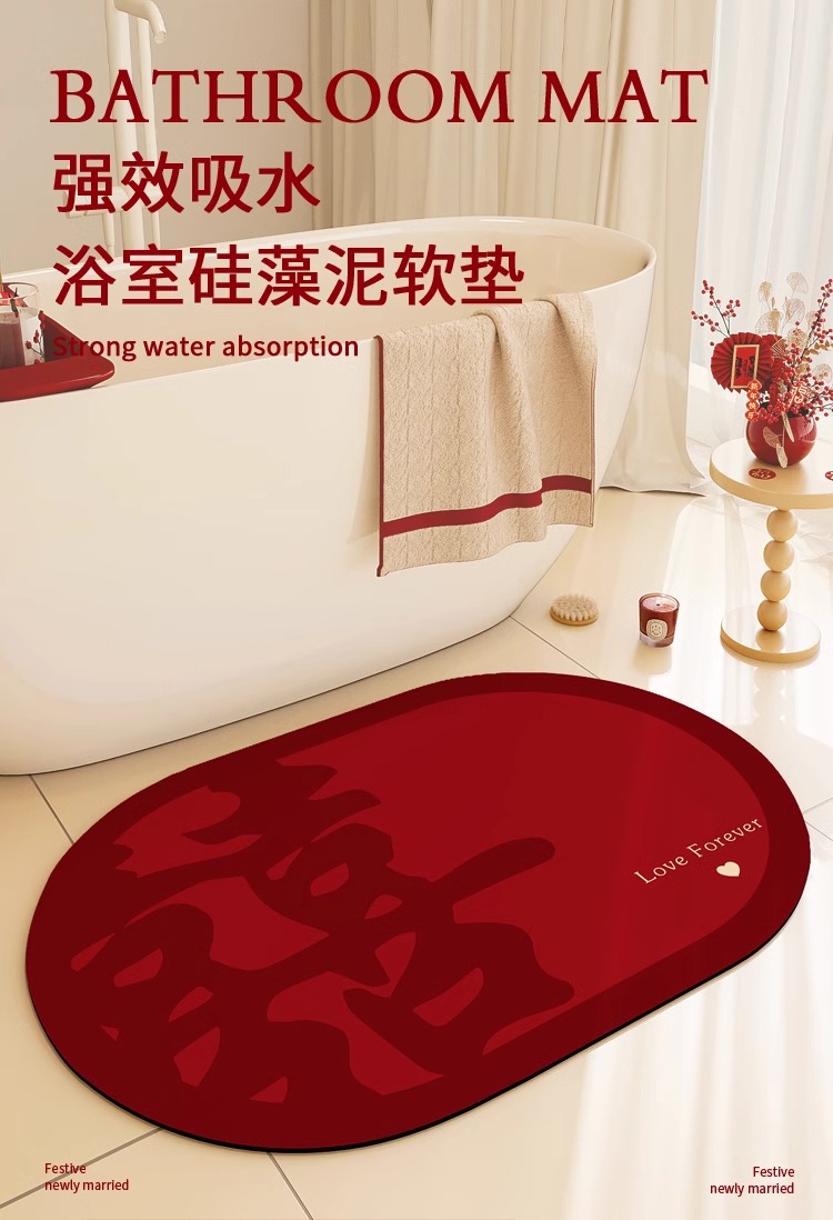 결혼식 바닥 매트, 욕실 문 입구, 미끄럼 방지 및 낙하 방지 규조토 진흙, 흡수성 및 속건성 빨간색 축제 욕실 바닥 매트스토어 가기