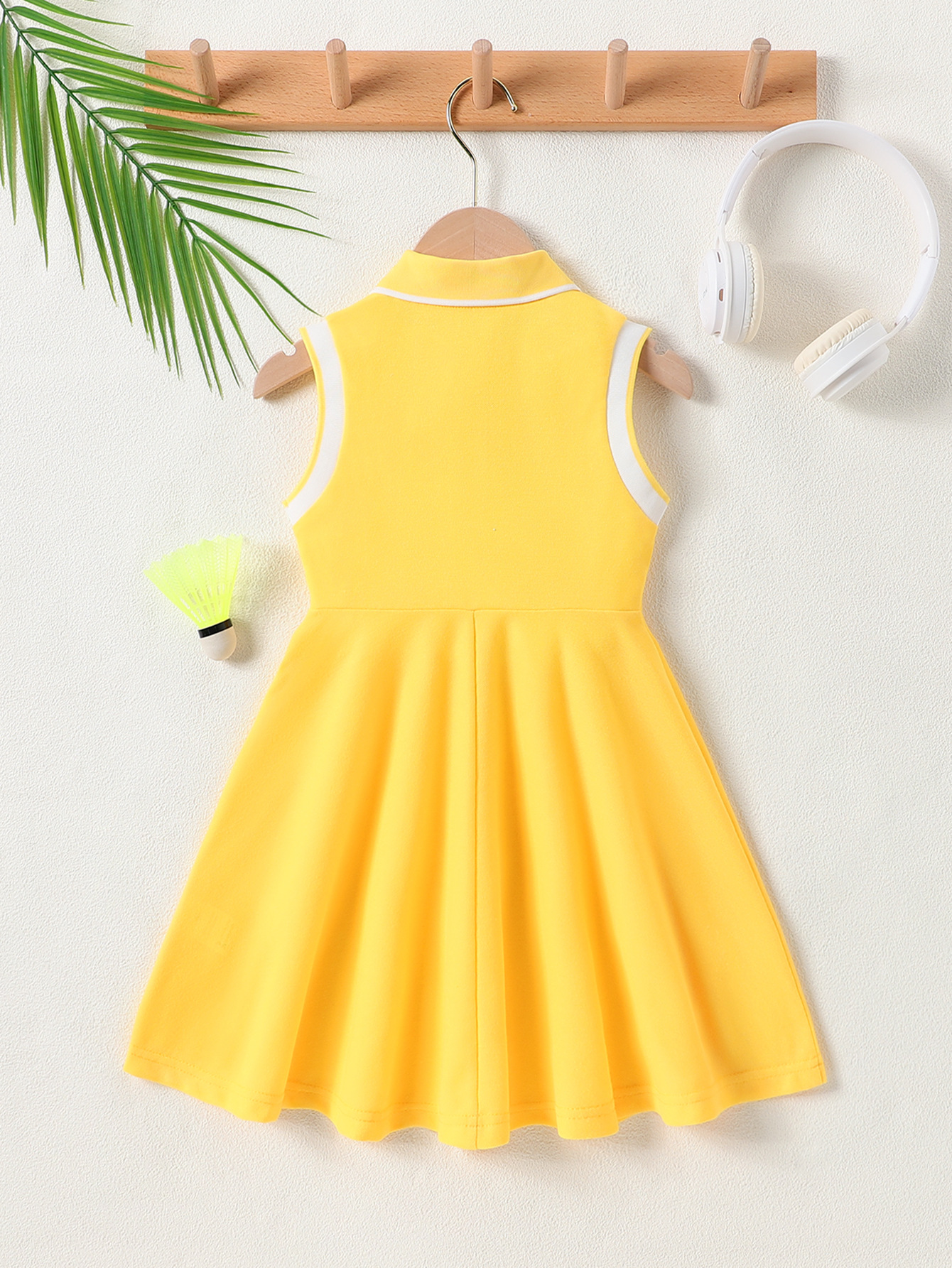 여자 만화 귀여운 카비 바라 프린트 폴로 칼라 민소매 드레스