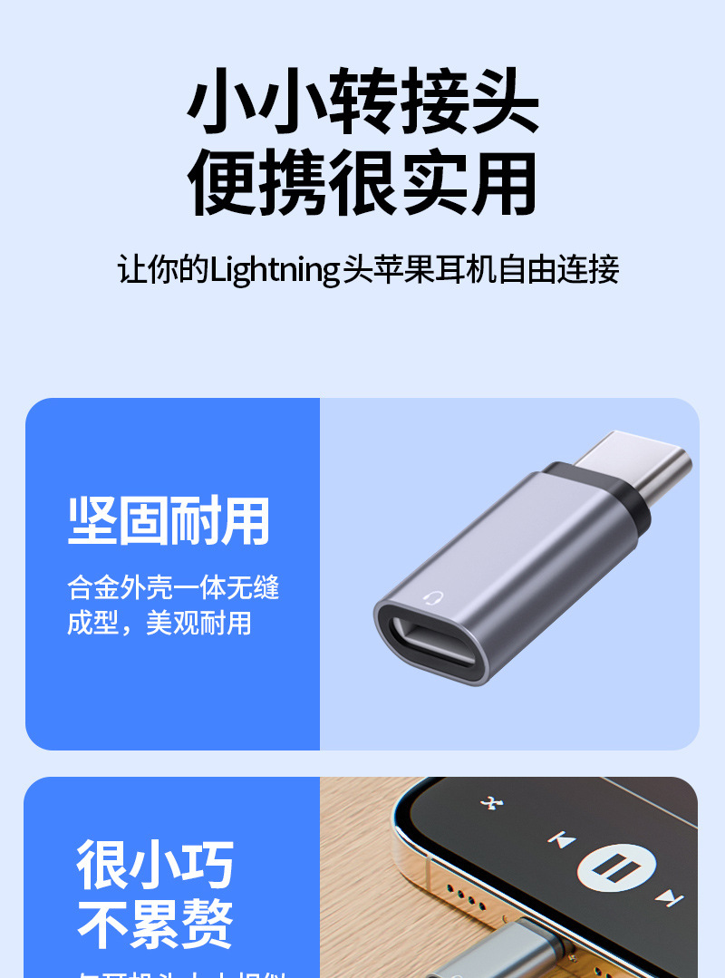 새로운 Apple 헤드폰 유형 어댑터에 적합한 합금 쉘 고품질 칩 유형 어댑터