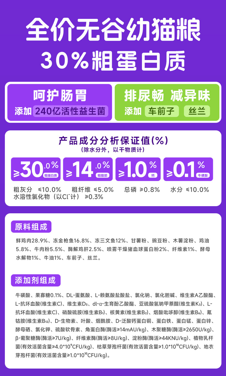 • 240억 프로바이오틱 새끼 고양이 사료