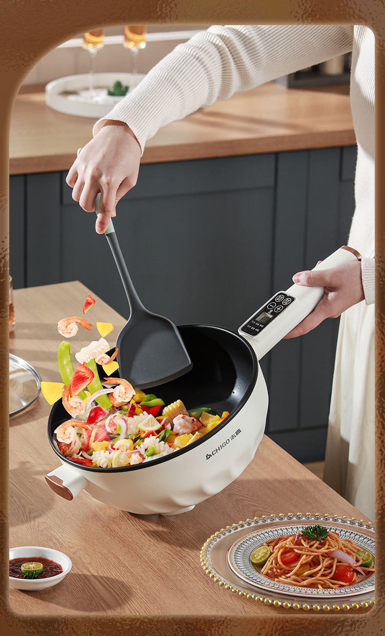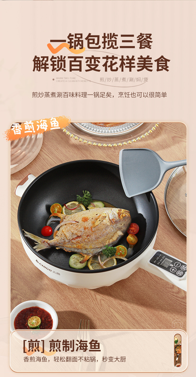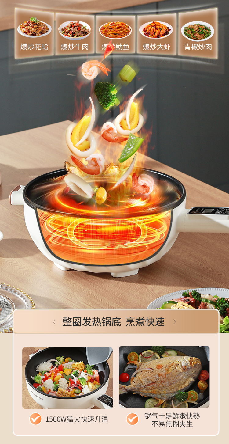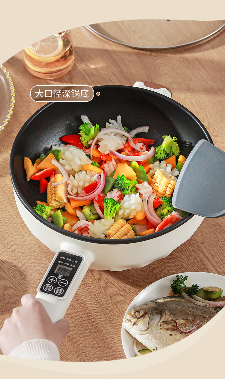 브랜드 전기 프라이팬, 가정용 다기능 논스틱 전기 냄비, 전기 핫팟, 찜/삶기/튀기기/볶기 올인원 전기 냄비