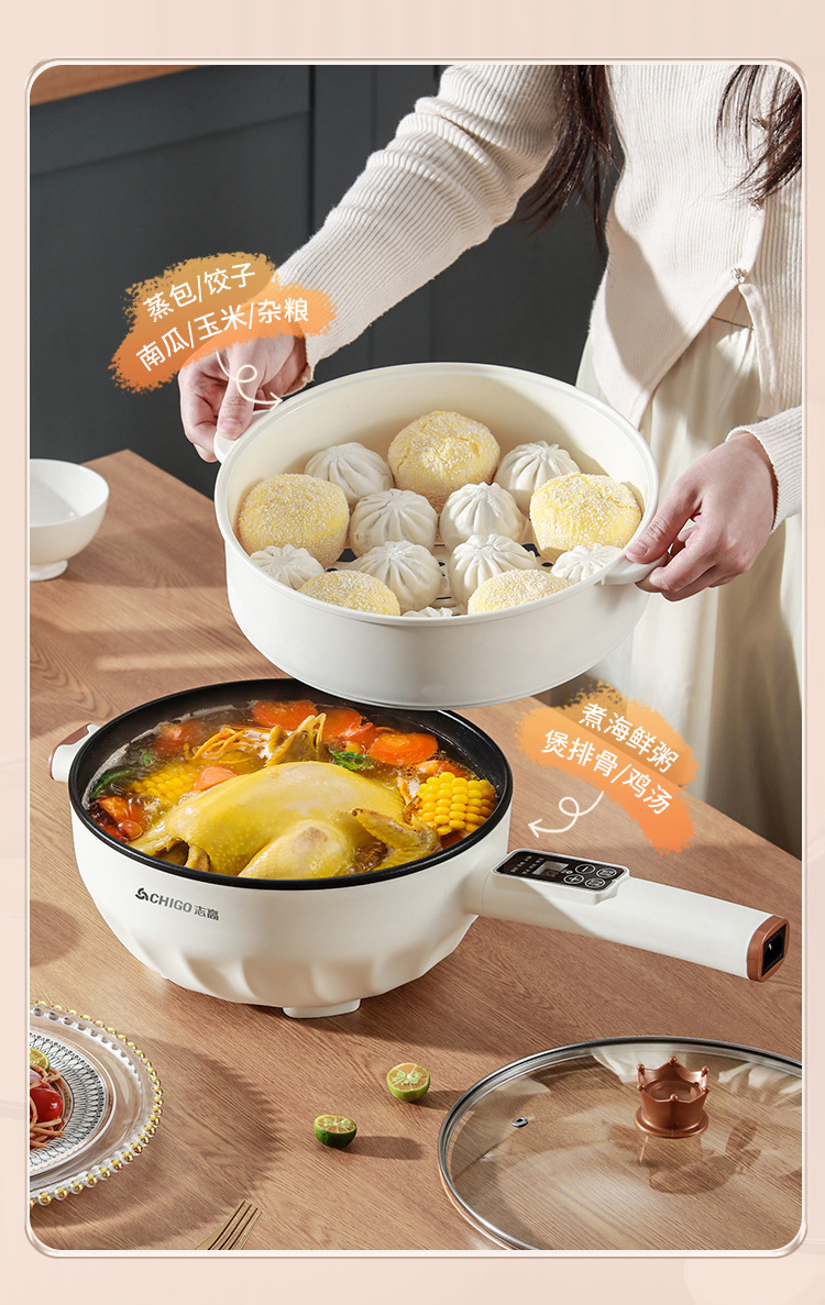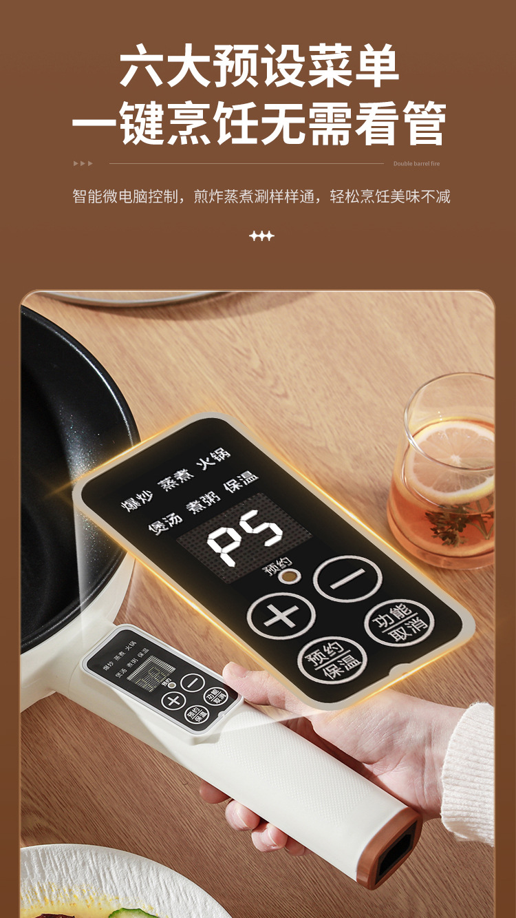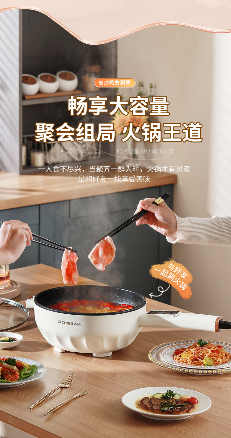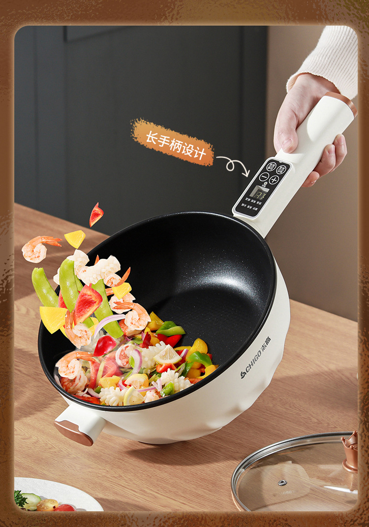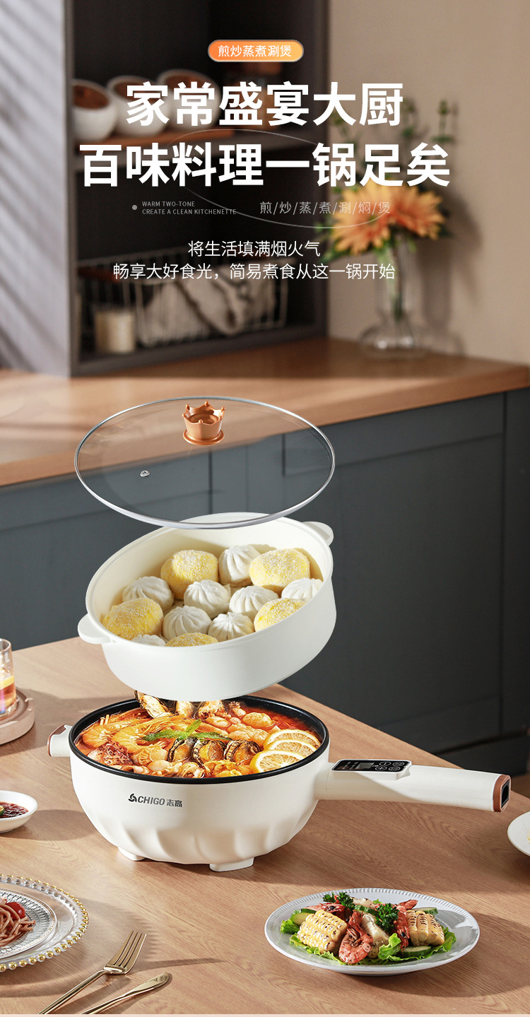 브랜드 전기 프라이팬, 가정용 다기능 논스틱 전기 냄비, 전기 핫팟, 찜/삶기/튀기기/볶기 올인원 전기 냄비