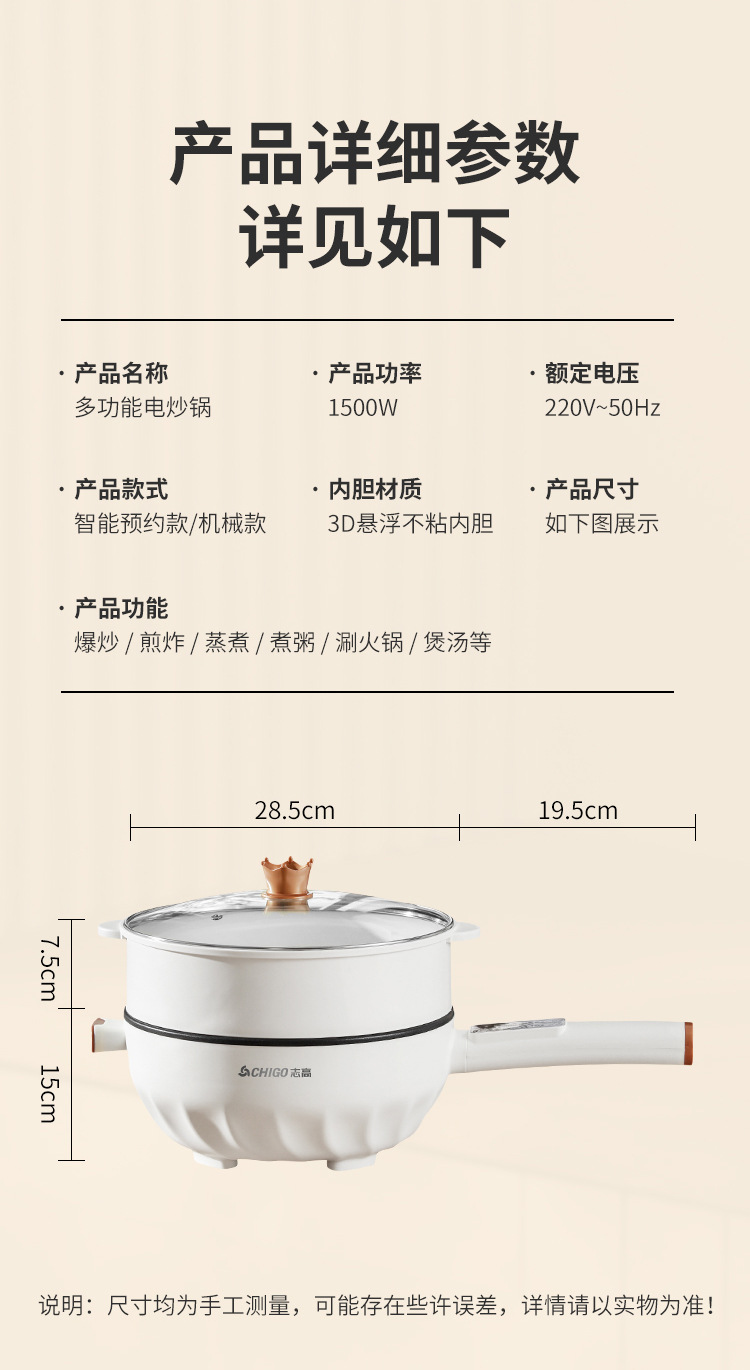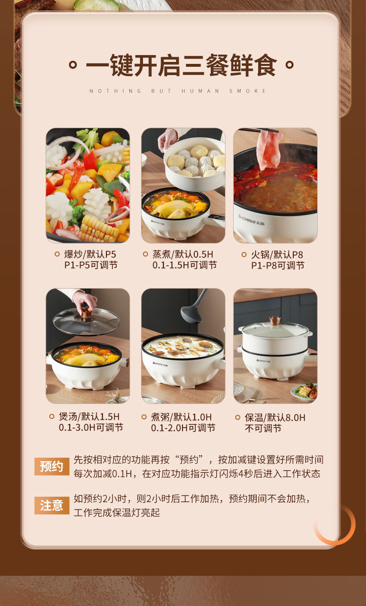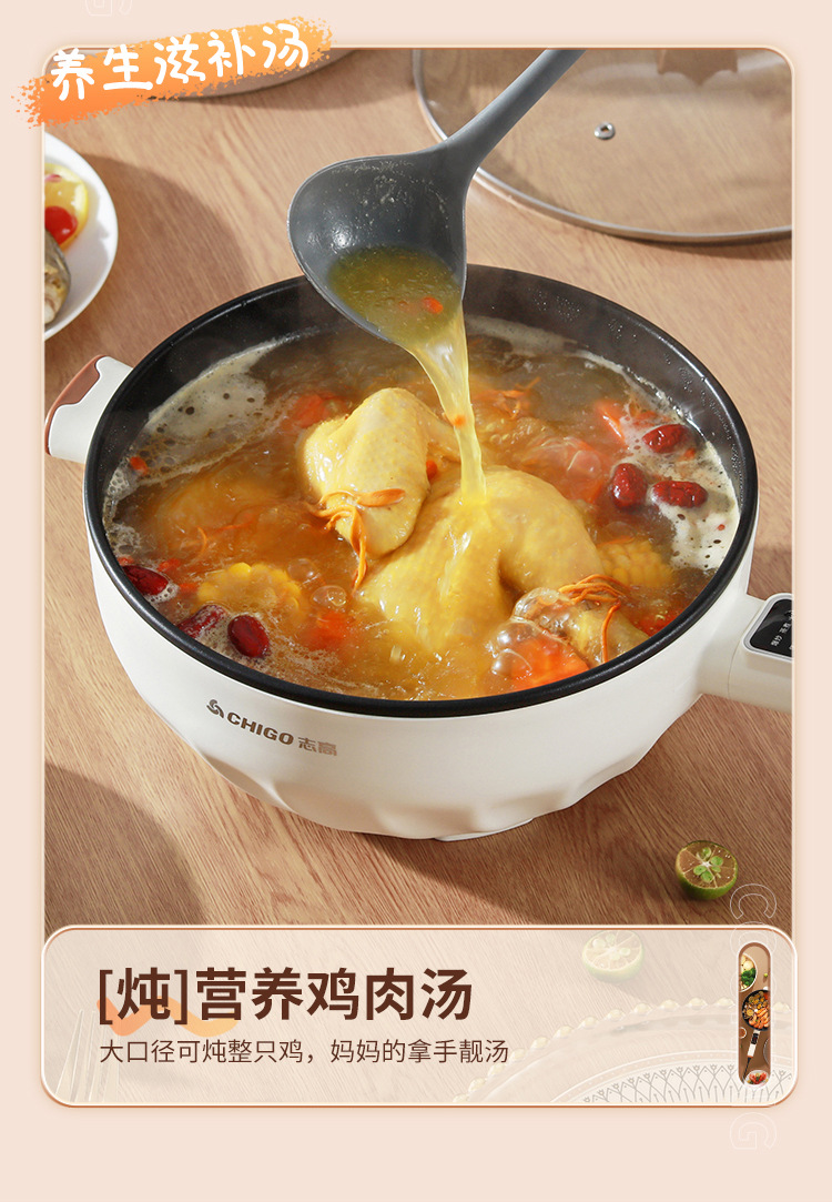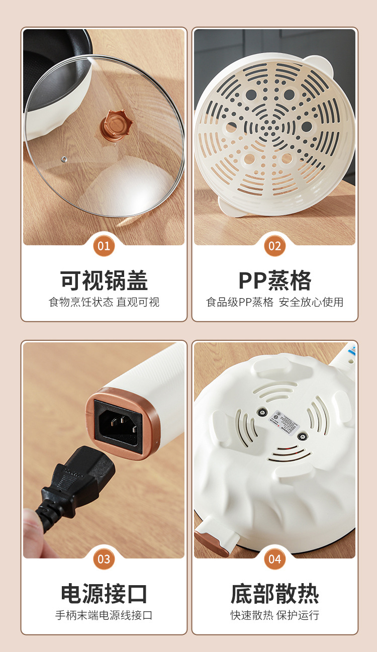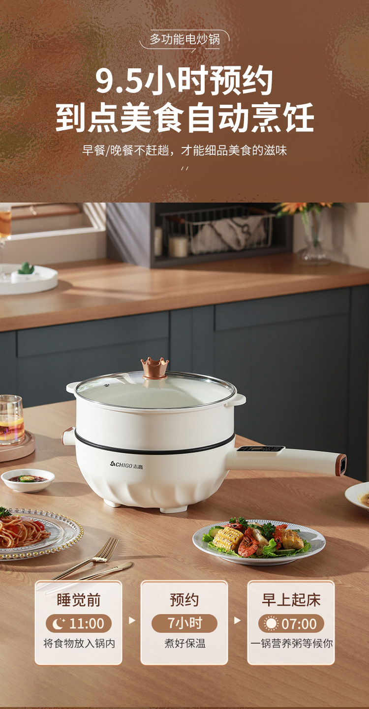 브랜드 전기 프라이팬, 가정용 다기능 논스틱 전기 냄비, 전기 핫팟, 찜/삶기/튀기기/볶기 올인원 전기 냄비